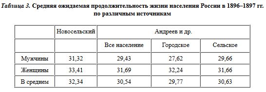 (из Новосельский С.А. Смертность и продолжительность жизни в России. Пг., 1916.)