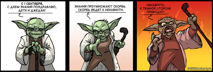 -- Ну, не то, чтобы стал фанатом, но нравились. За образ Дарта Вейдера, естественно. Было сразу понимание, что всякие "Император плохой", "ситхи плохие", "Вейдер исправился" и проч. -- это стандартные агитки. На самом же деле было как-то так: "Дарт Вейдер, ученик Дарта Сидиуса".