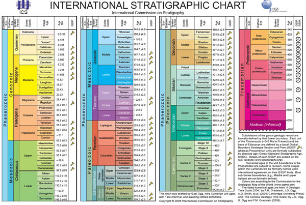 Как и во многих других случаях, для того, чтобы получить верное представление о степени убедительности палеонтологических доказательств эволюции, необходимо прежде всего осознать масштаб происходящего, всю громадность объема накопленных данных. Для начала рассмотрим современную геохронологическую шкалу - результат многолетних трудов многотысячной международной армии геологов (См. также: Стратиграфия и геохронология).