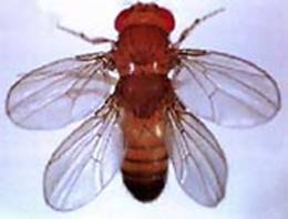 Слева: плодовая мушка Drosophila melanogaster, один из основных модельных объектов генетики животных. Справа: мутация bithorax у дрозофилы: превращение третьего сегмента груди в дубликат второго, в результате чего у мухи появляется ещё одна пара крыльев, а также второй желудок.