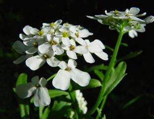 Справа: двусторонне-симметричные цветки ибериса (Iberis amara)