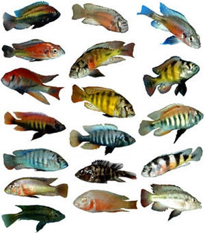Рыбы-цихлиды озера Малави (слева) и Виктория (справа). В Малави вода более прозрачная, в ней лучше распространяется коротковолновый свет, поэтому многие рыбы имеют синюю и фиолетовую окраску. В оз. Виктория вода мутная, поэтому наряды цихлид выдержаны в основном желто-красных тонах.