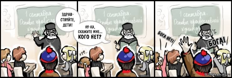 Класс одобрительно загудел. Отец Ферапонт умиленно разглядывал свою будущую паству. Слезы радости блеснули в его глазах. Ему все же удалось достучатся до этих зачерствевших в неверии сердец, удалось донести до них Слово Божие!