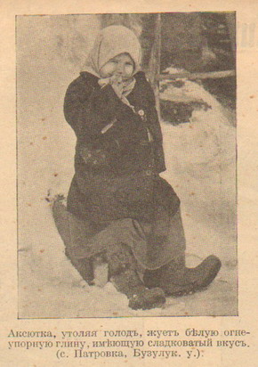 «... на печке сидит мальчик, опухший от голода, с желтым лицом и сознательными, грустными глазами. В избе -- чистый хлеб от увеличенной ссуды (улика в глазах недавно еще господствовавшей системы), но теперь, для поправления истощенного организма, уже недостаточно одного, хотя бы и чистого хлеба.»[2]