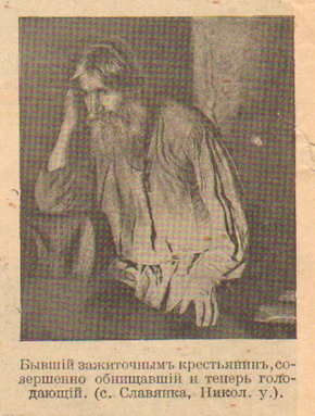 Подпись: Бывший зажиточный крестьянин, совершенно обнищавший и теперь голодающий. (с. Славянка, Никол. у.) 1911