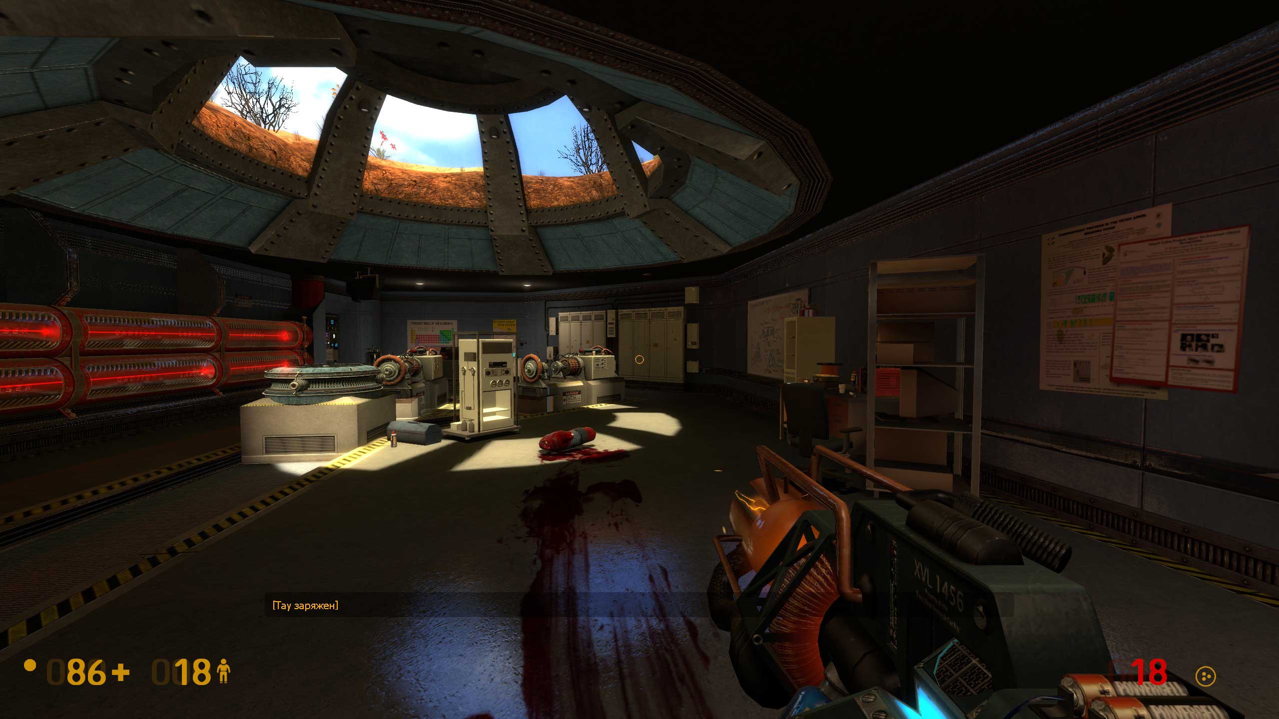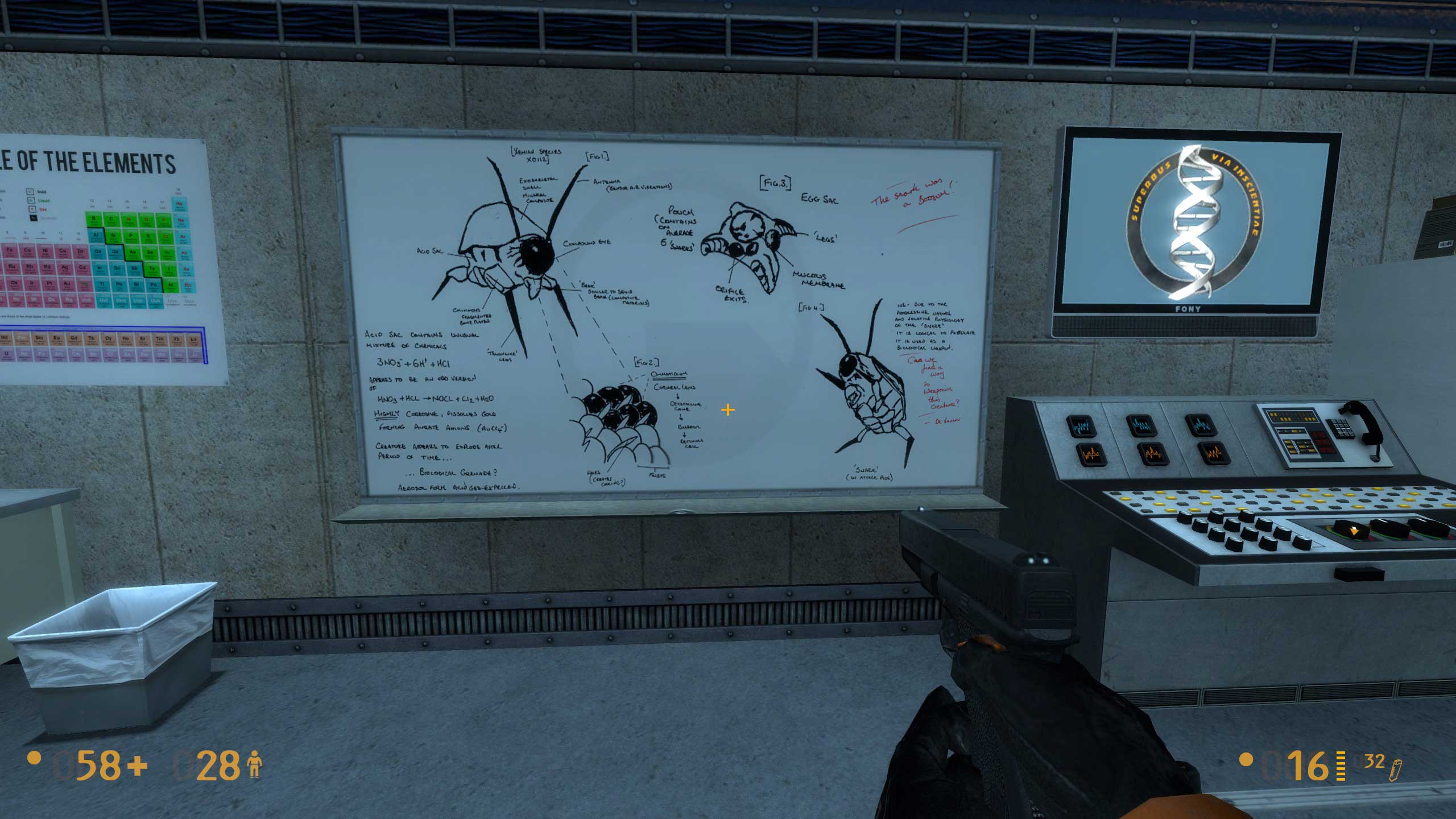 Фигота с рукой — это alien grunt, ксеновский солдат. "Этически сомнительный" — это стимовская ачивка за проведение разных "опытов" в этой лаборатории.