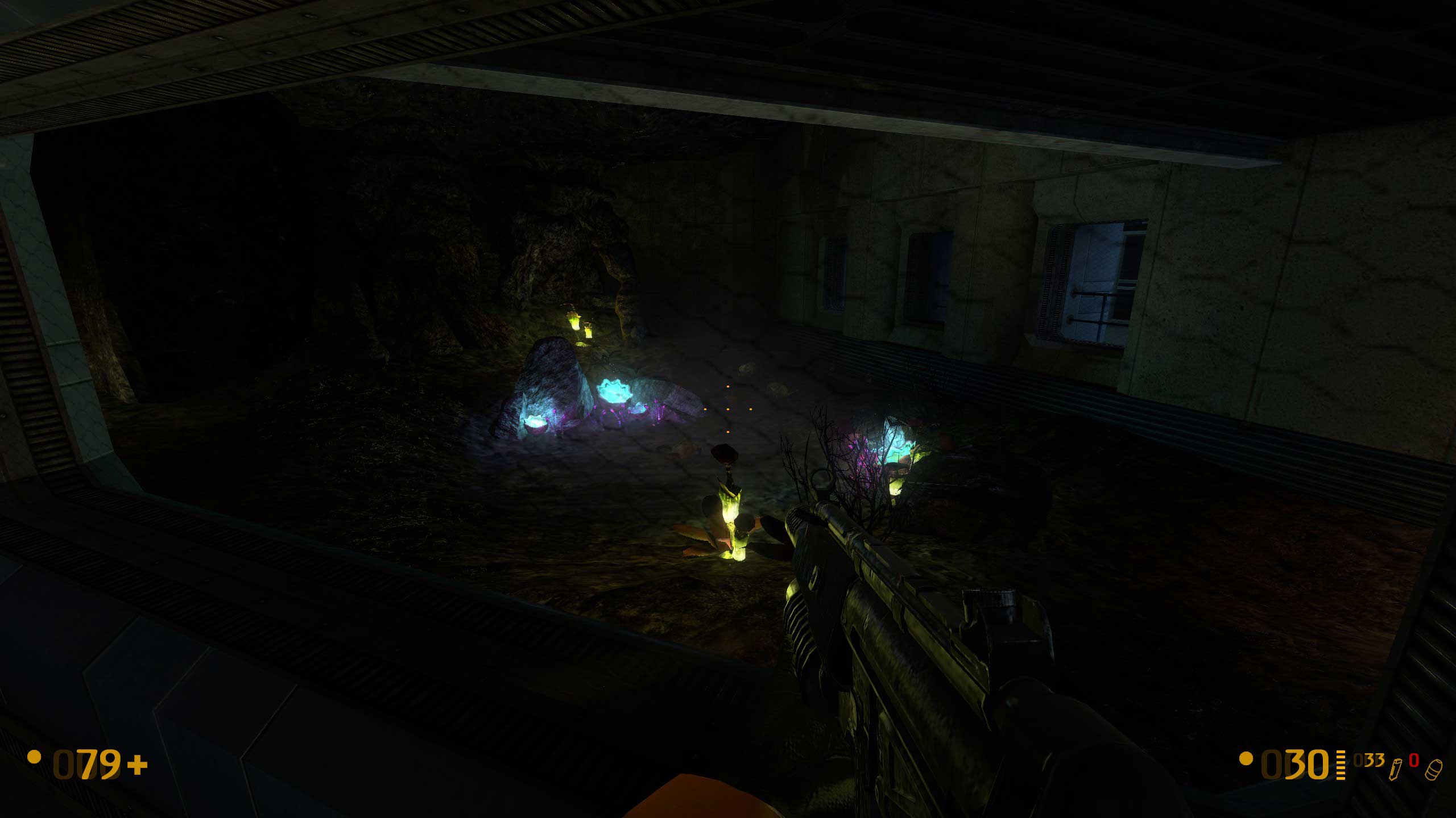 Садик инопланетной флоры и хедкрабов. Темновато.