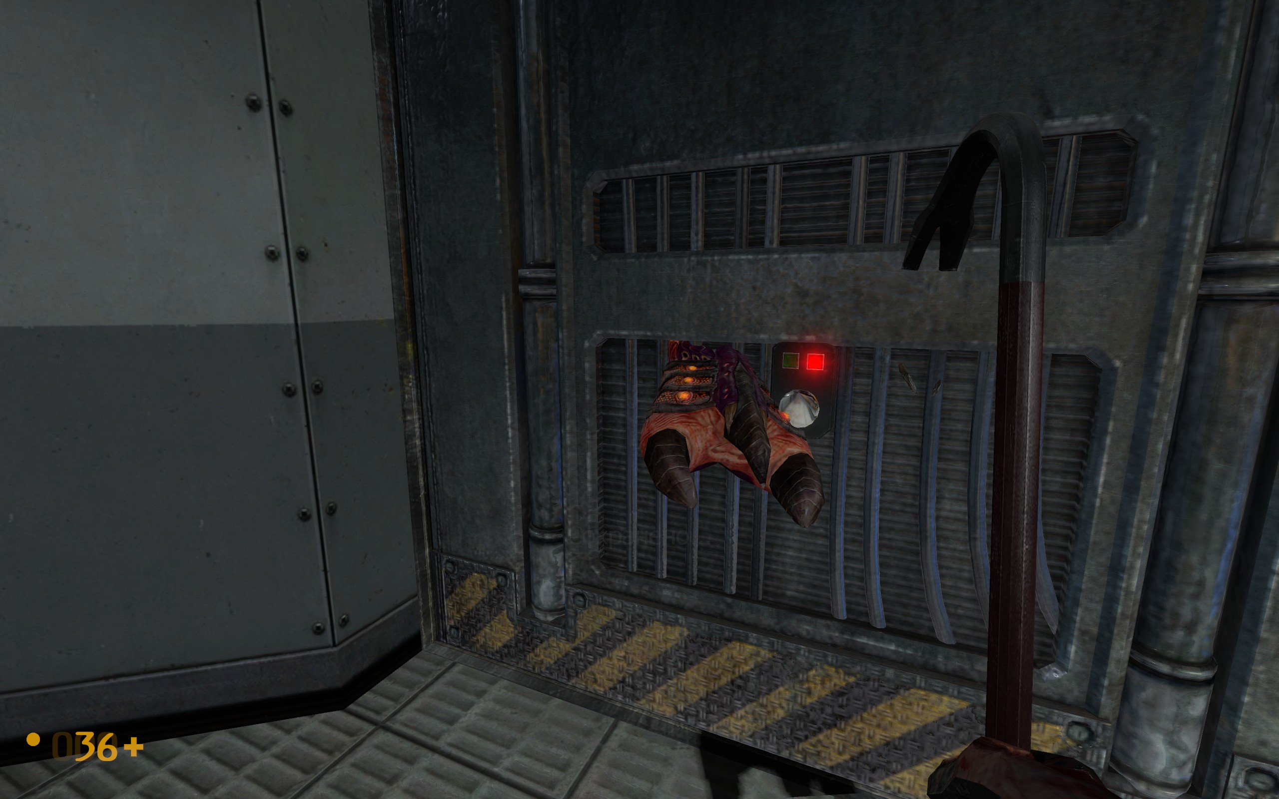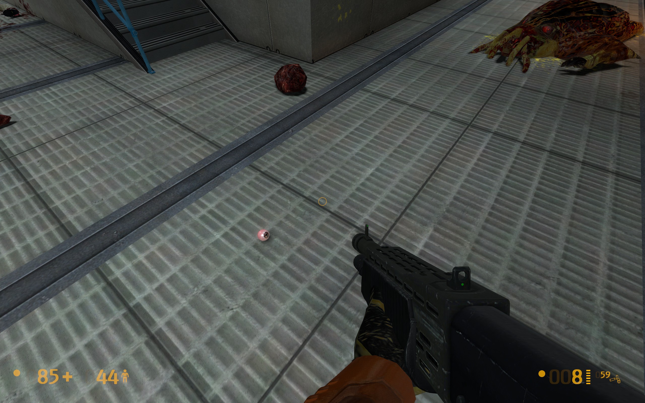 12. Хотел эпично забить грюнта монтировкой, но если бить по руке, повреждений не наносится. Оно и логично: тут торчит оружие, ручной улей, а это -- отдельный девайс.