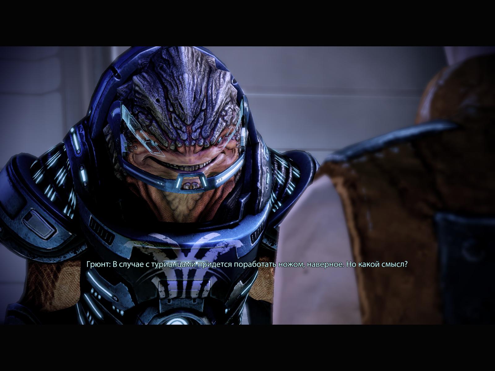 5. Местами всё-таки поражает логомыслие разработчиков. Гаррус справедливо хочет убрать предателя, из-за которого погиб его отряд -- так дается опция "предупредить и спасти". Что-то я даже не рискнул проверять, что Гаррус в этом случае скажет... Неужели кто-либо мог сделать такой выбор при игре?