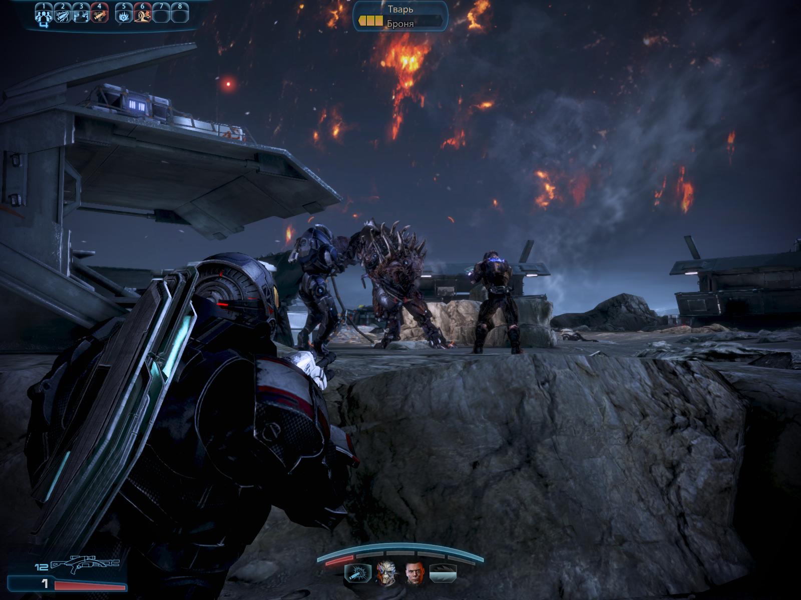 13. Были прикольные пострелушки из станкового пулемёта. Джеймс с Гаррусом фланги прикрывают, а я посередине. Весело, только трясёт сильно.