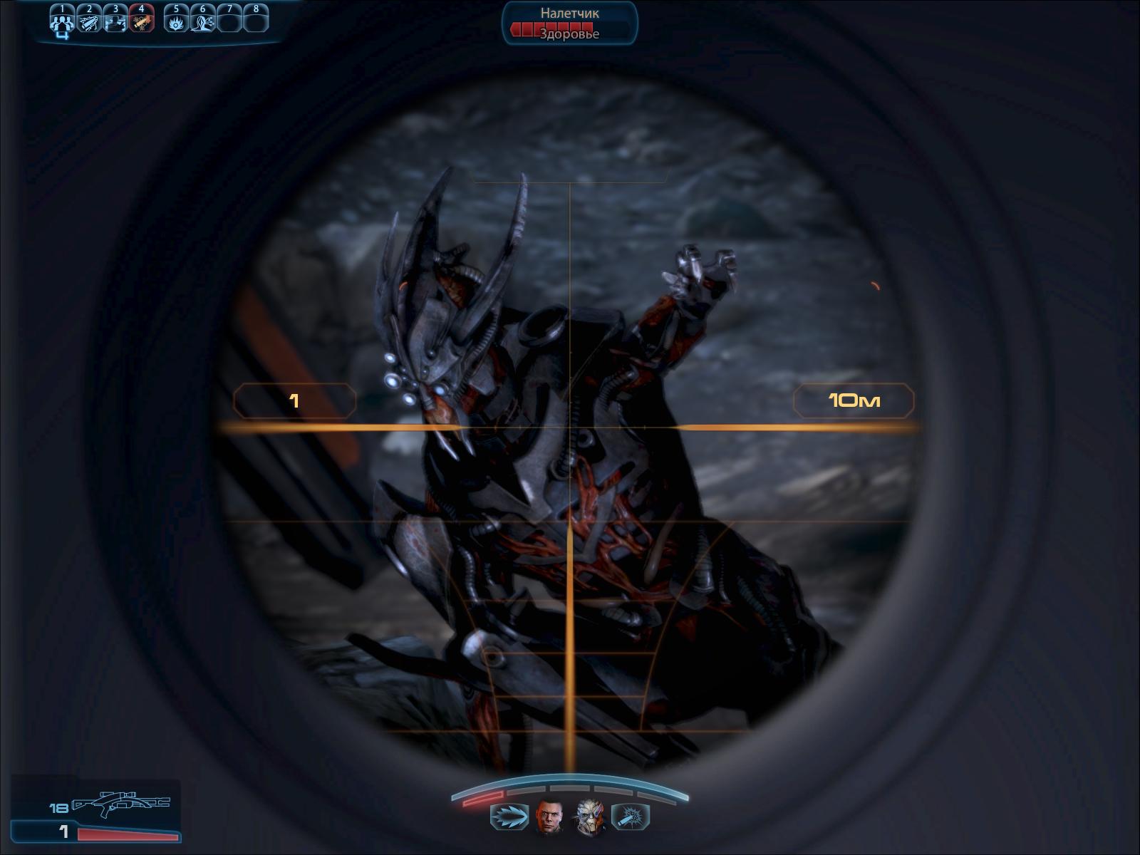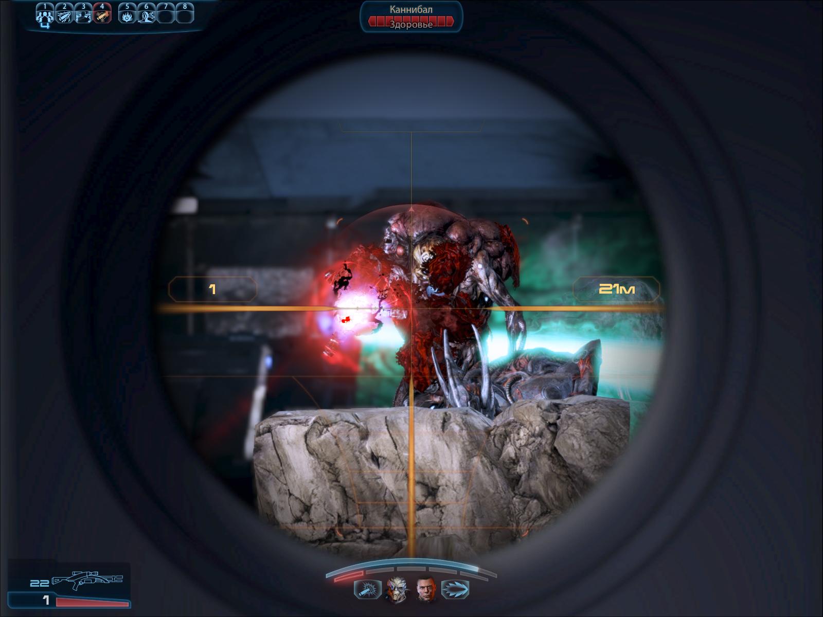 14. А вот эта тварь -- реально что-то типа босса левела. Быстрая, прочная и при этом рвёт руками на разноцветные свастики только так. Единственная метода -- это стрелять издали из снайперки, пока Гаррус с Джеёмсом вокруг бегают, а затем, когда она их обоих убьёт, прятаться в невидимости и оттуда воскрешать. Тогда она тебя видеть перестаёт и опять их начинает убивать.