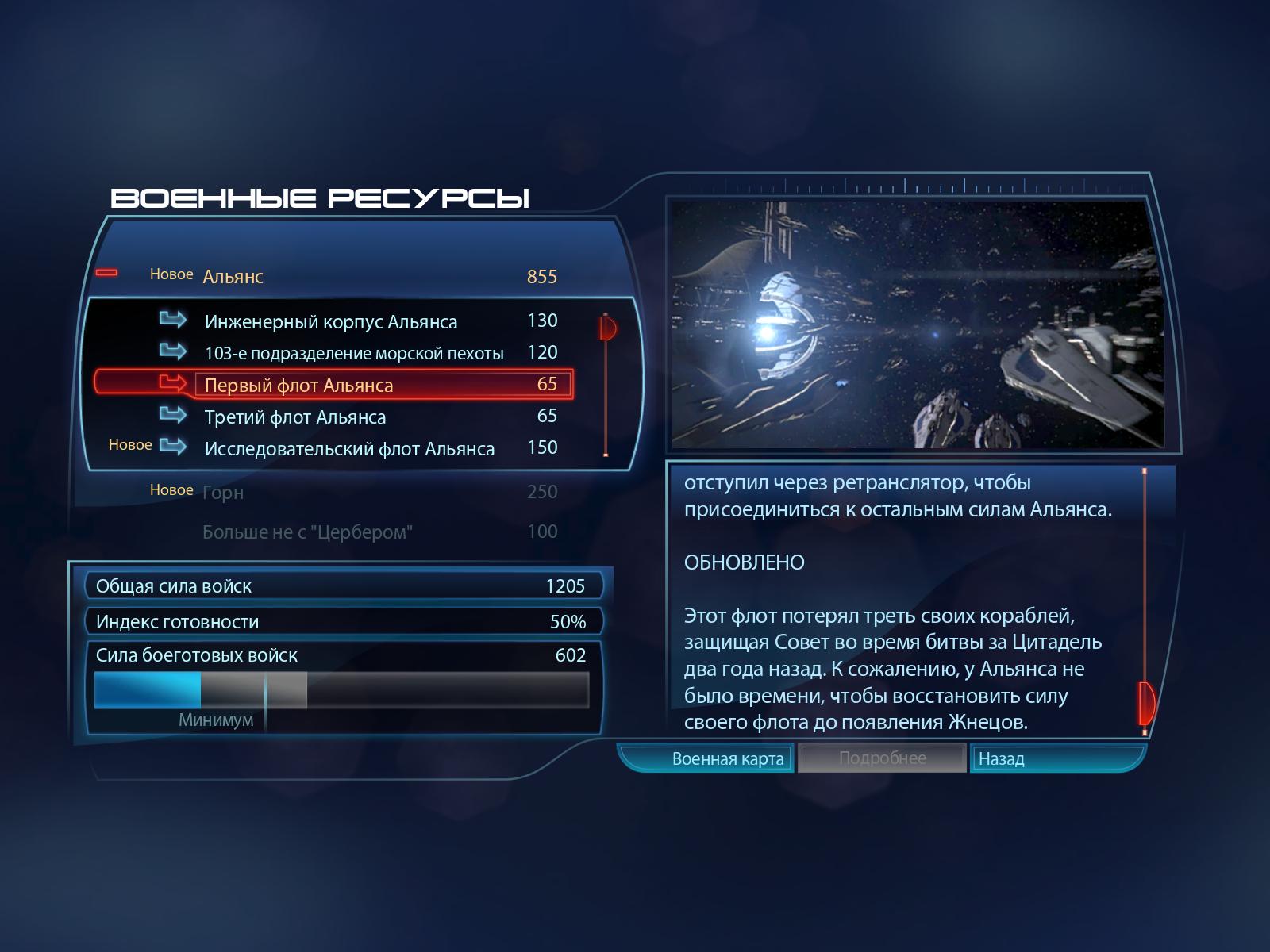 5. Вообще, какая-то странная система на тему военной мощи. Не, идея-то хорошая -- всех объединить. Вот только тут хоть флоты, а в списке ресурсов попадаютися и отдельные люди. А где вся гигантская военная машина? У турианцев там было 37, что ли, линкоров...