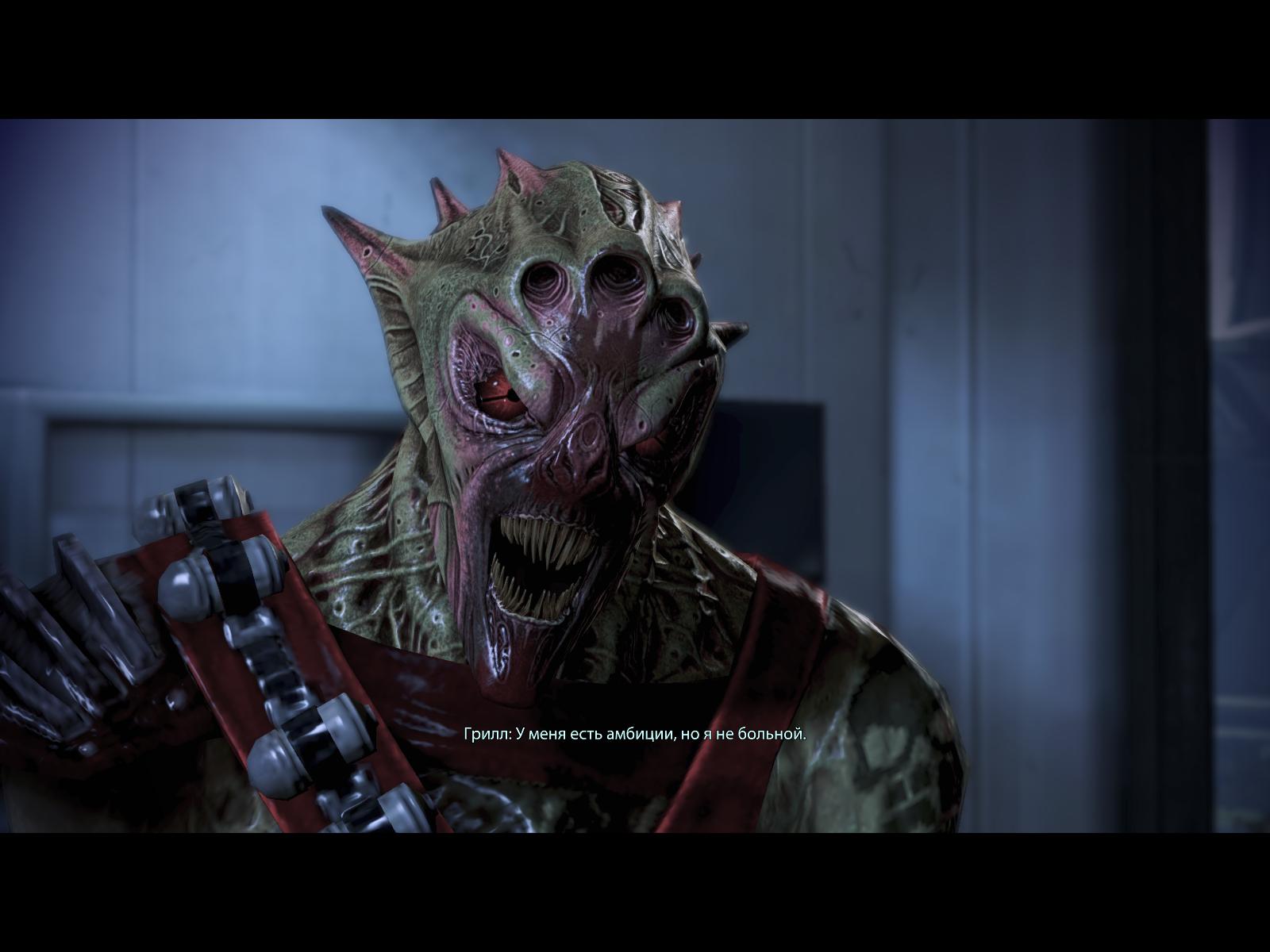 17ur: У Гарруса и об отдыхе достаточно странные идеи. Кстати, снайперку ему потом навесьте Incisor, которая бьёт тремя патронами зараз с сильным уводом ствола. Гаррус-AI целится по контуру, а не в голову, так что там дамага будет очень. А автомат родной турианский.