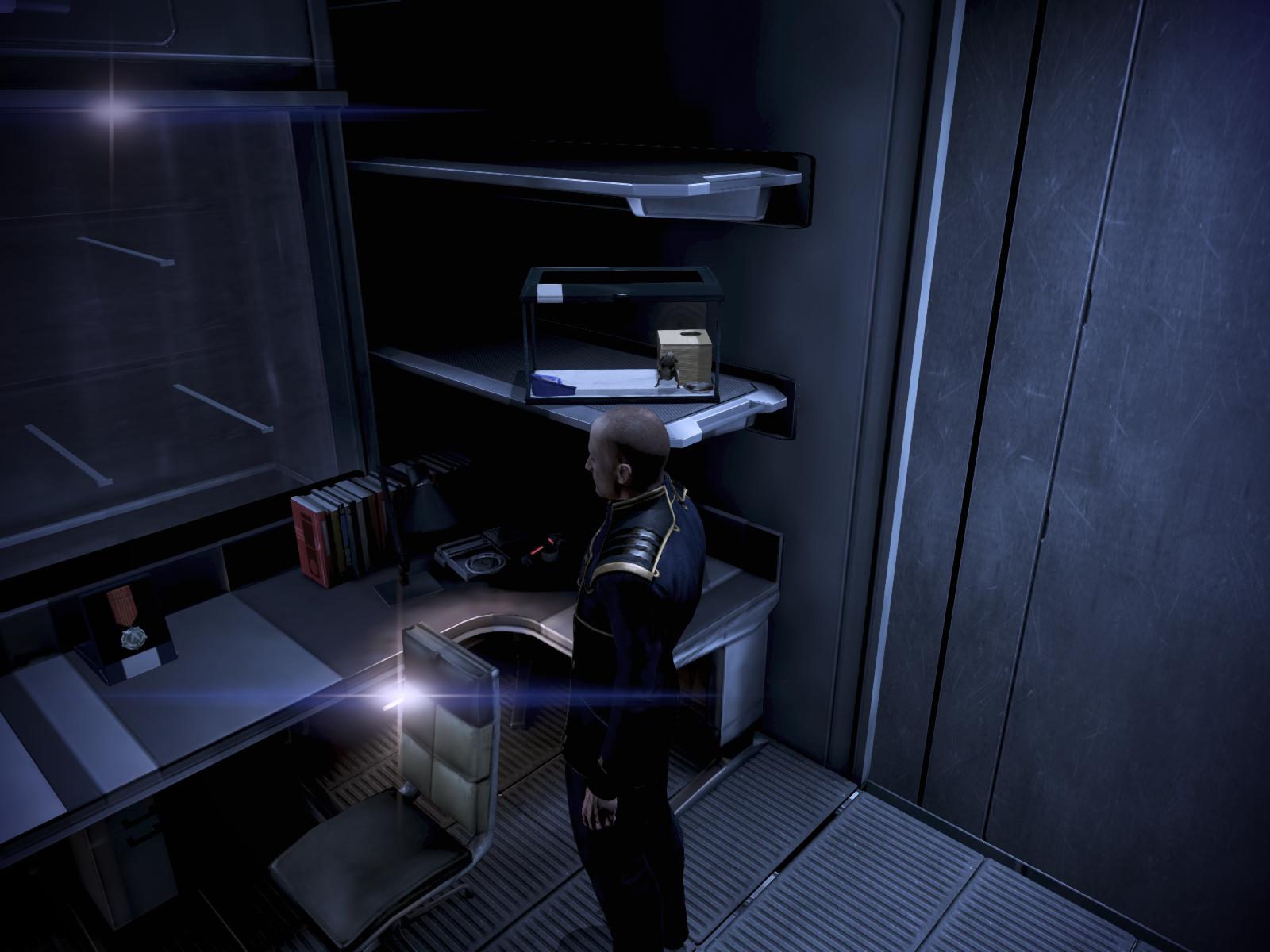 20. С Келли пообнимался. Обидно, что у неё психологическая травма. С удовольствием взял бы на "Нормандию", поселил бы в каюте, она бы хомяка кормила и рыбок...