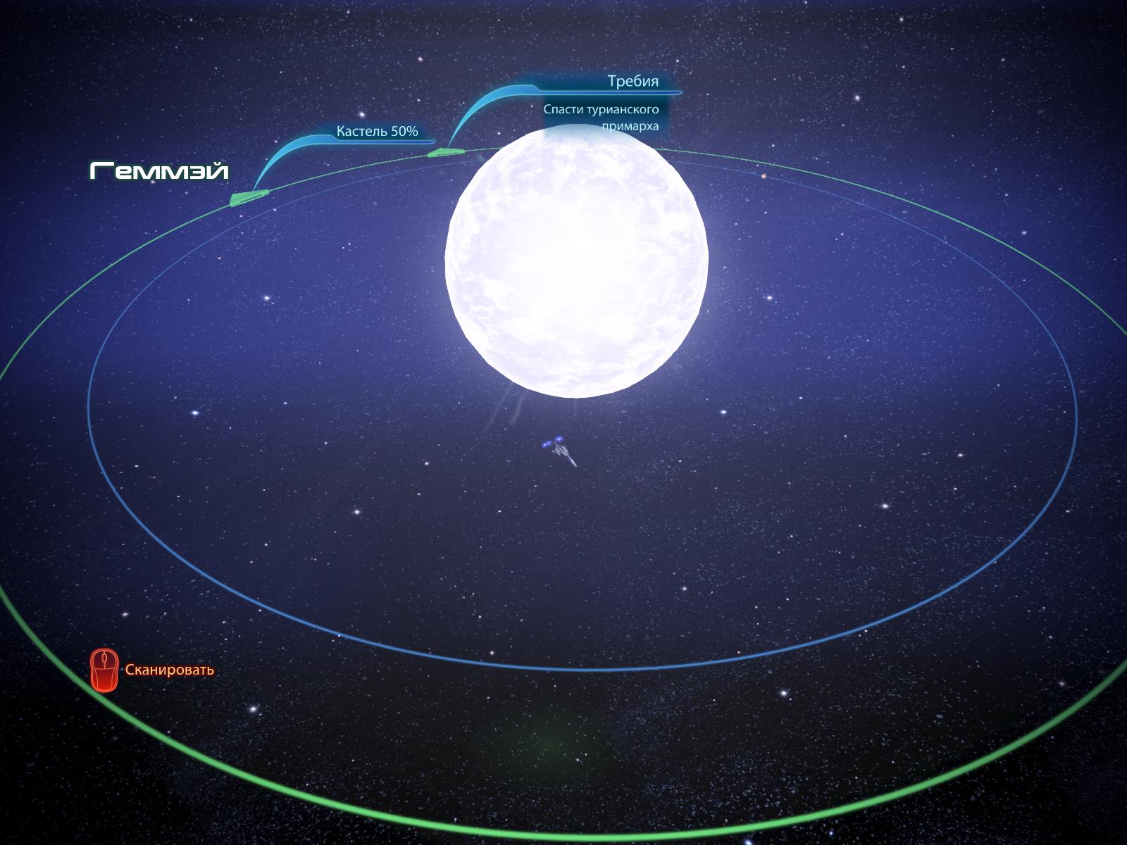 3. Самая прикольная система из попадавшихся. Гигантская звезда и мелкая планета. Причём там ещё два скопления обломков с топливом :-)