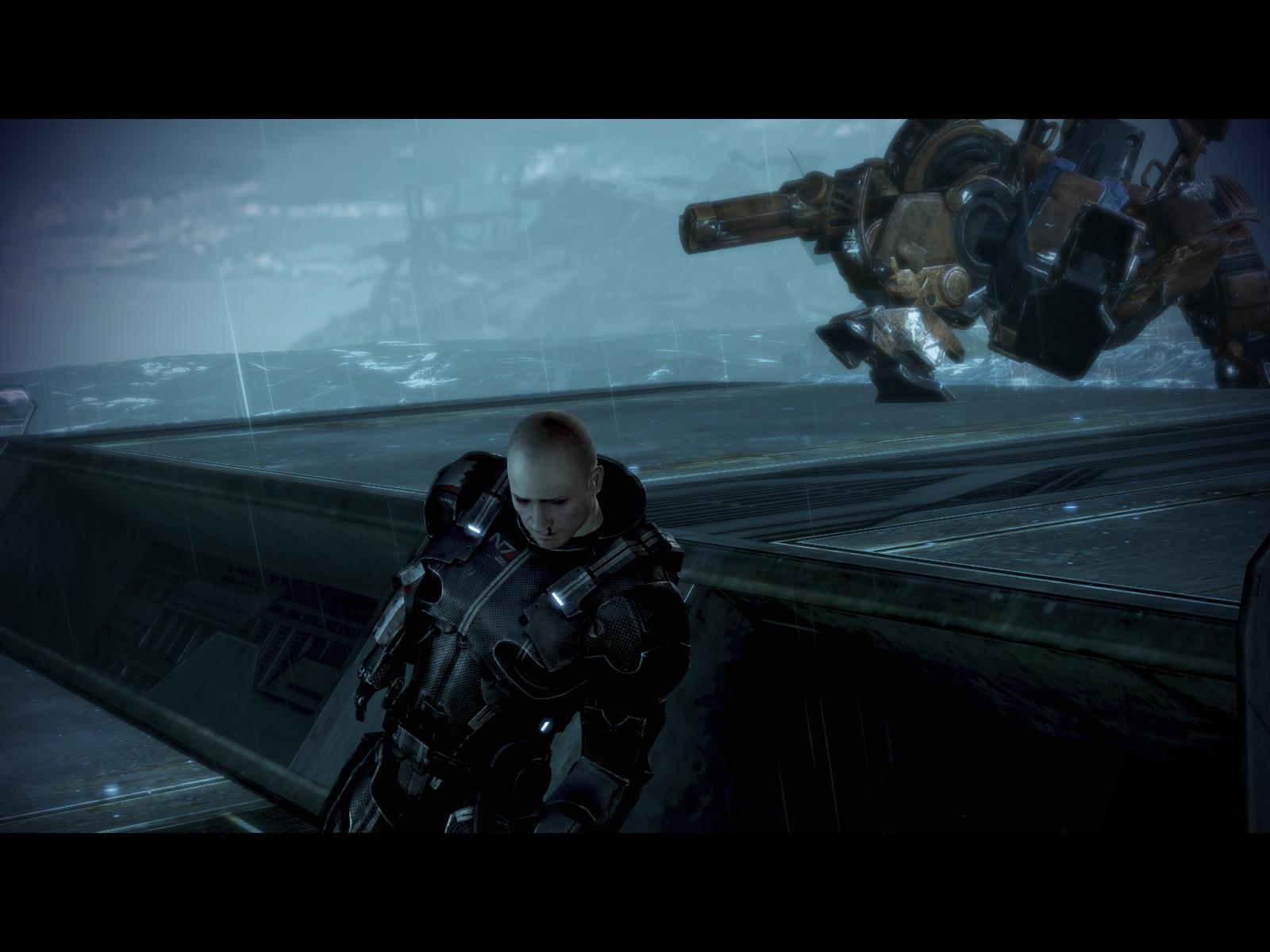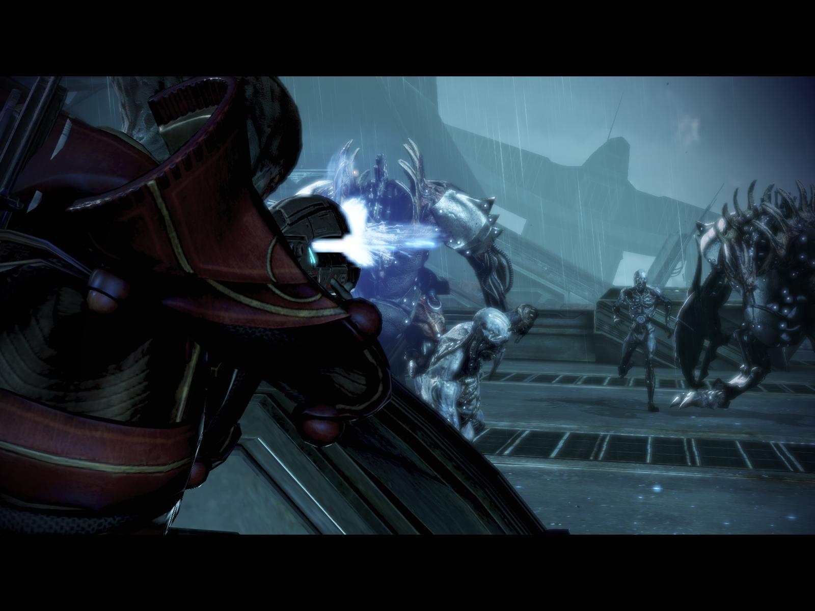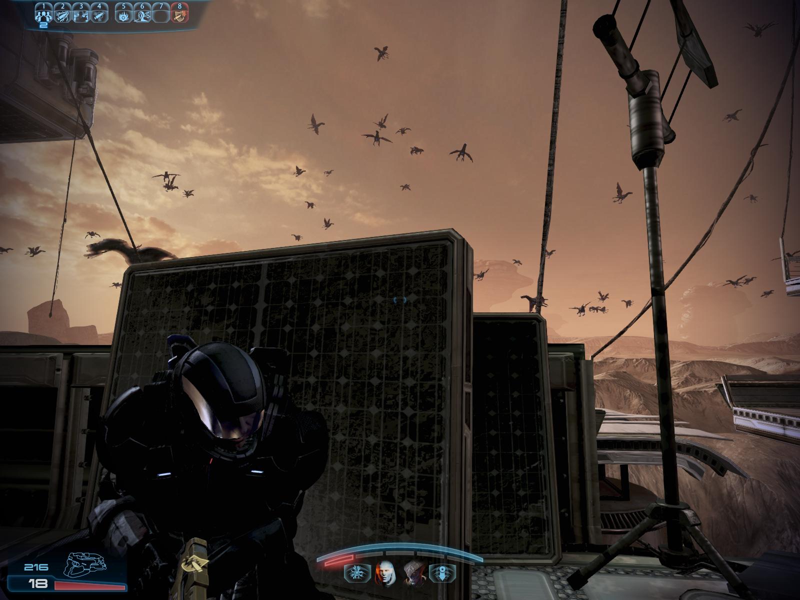 20. Вылезает Шепард из воды и видит, как твари гоняют по полю его товарищей.