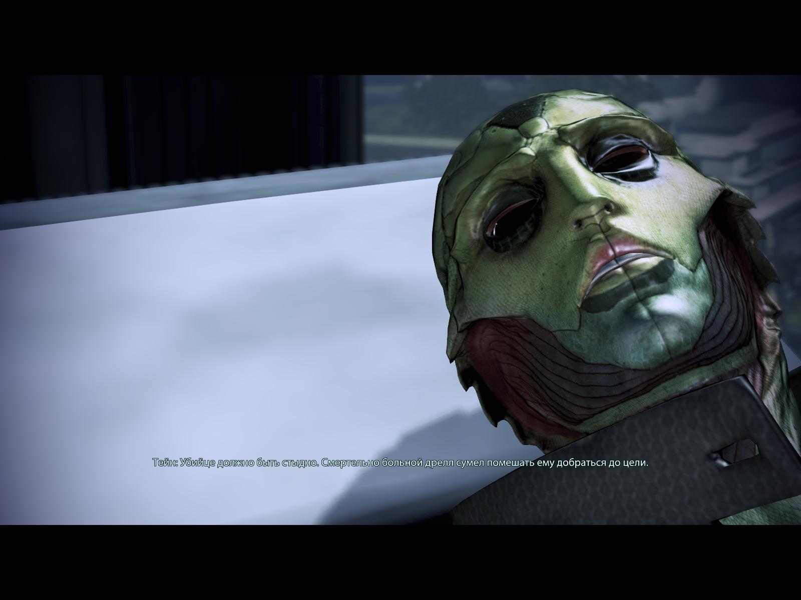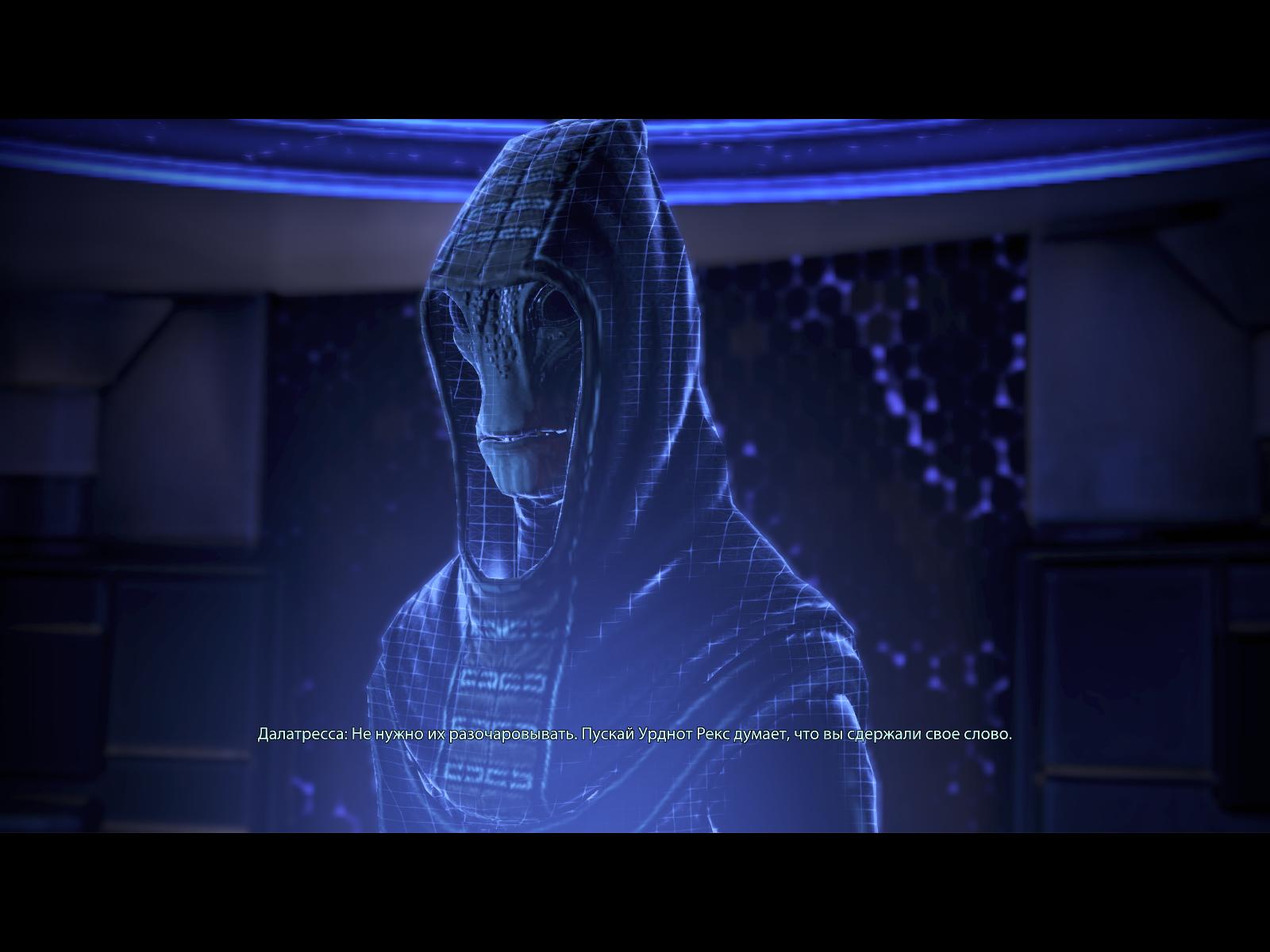 1. Делатресса саларианцев несколько объелась рыбного супа и предложила мне предать кроганов. Не, конечно, можно исходить из блага Вселенной, даже если действие вызывает отторжение (предательство -- недопустимо для разумного, я это расписывал в "Эссе о предательстве, суггестии, ученых, Родине, любви и близости к природе "), но даже в этом случае -- из кроганов сейчас получатся куда более серьёзные воины, чем из саларианцев, турианский патриарх явно выступал при переговорах на стороне кроганов (и они нужны турианцам), да и в Совете саларианец был самым антишепардски настроенным, начиная с первой части игры.