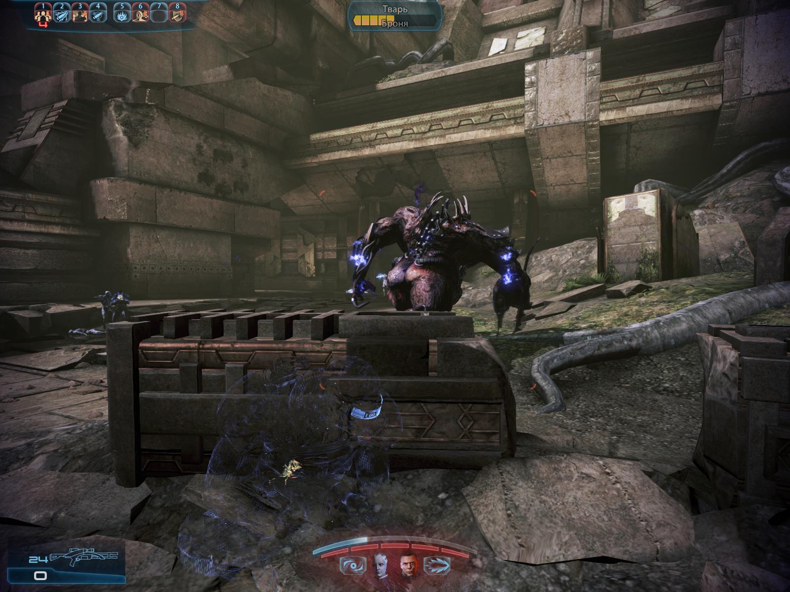 -- Проблема в том, что когда стреляет Шепард -- Тварь на него ориентируется в первую очередь. С одной ещё так можно, а вот две -- жоповато. Шустрые.