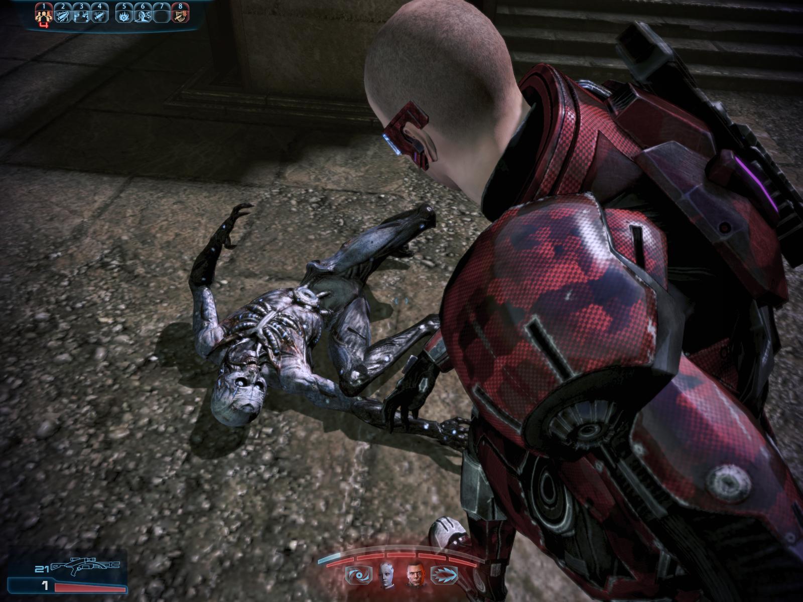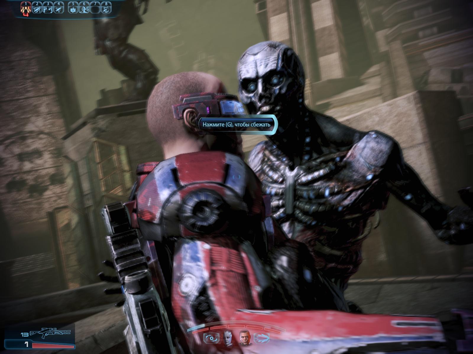 17ur: -- Угу, жамкаем F три раза в секунду. Но могут задавить, могут, они по-прежнему дамажат Шепарда, пока тот их рвёт.