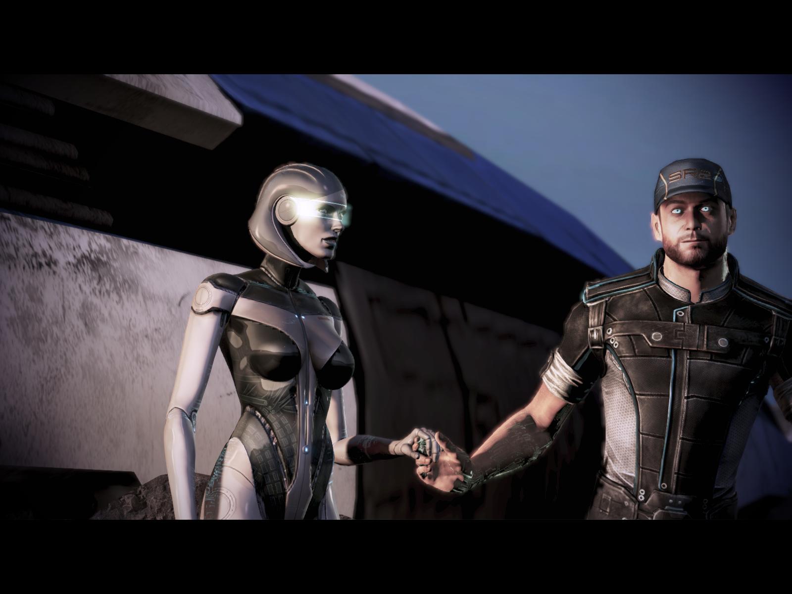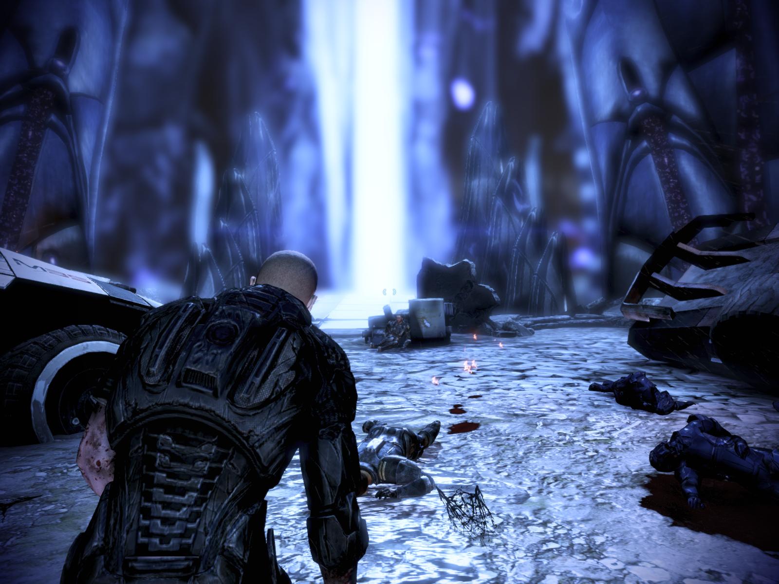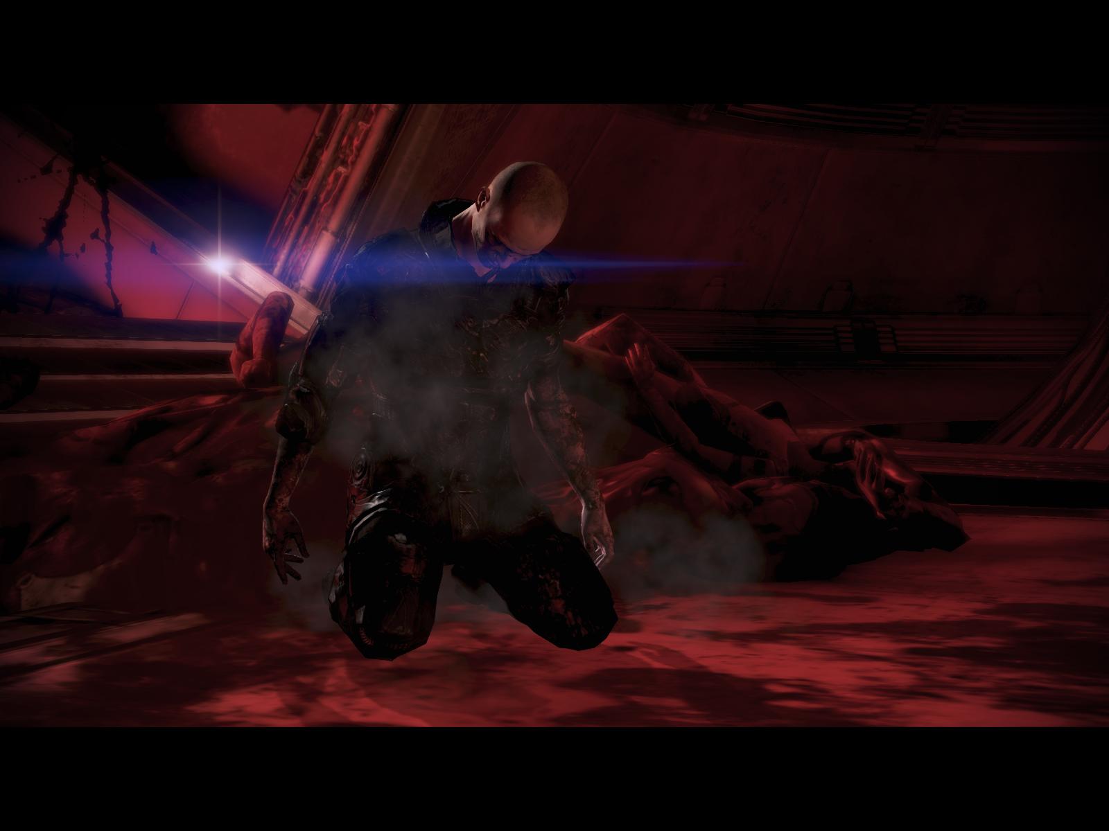 Первый раз я пошёл и прострелил правый энерговод, "убить жнецов". Получилось не так уж и плохо: даже "Нормандия" летает (правда, Сюзи -- увы, гибнет), человечество выжило. В конце показывают кусочек еле живого Шепарда -- возможно, умирающего -- и только радуешься, что выжил. Появляется какой-то мальчик, который просит рассказать легенду про Шепарда -- мол, умер так умер. И команда радостно вешает мемориальную табличку, даже не поискав тело -- вообще-то, один раз Шепарда уже собирали, Миранда знает, как это делается.