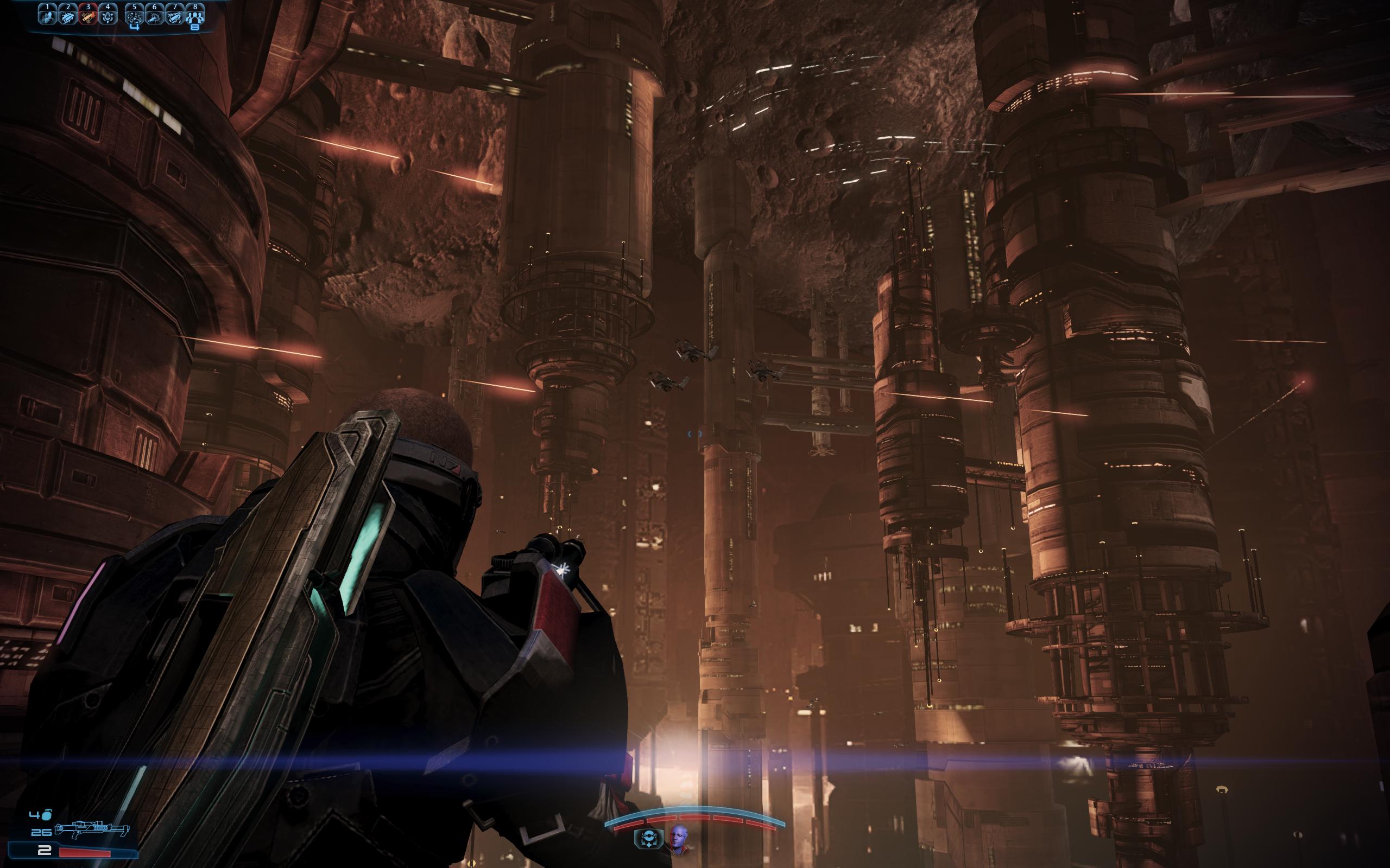 3. Нестандартность лишь в том, что Ария не доверяет никому, кроме Шепарда, и команду не берём. Сражаемся либо вдвоём с Арией, либо местами третьей добавляется местная турианка. Увы, как говорил -- видео я пролопоушил, а скриншотов делал мало -- мол, видео покажу...