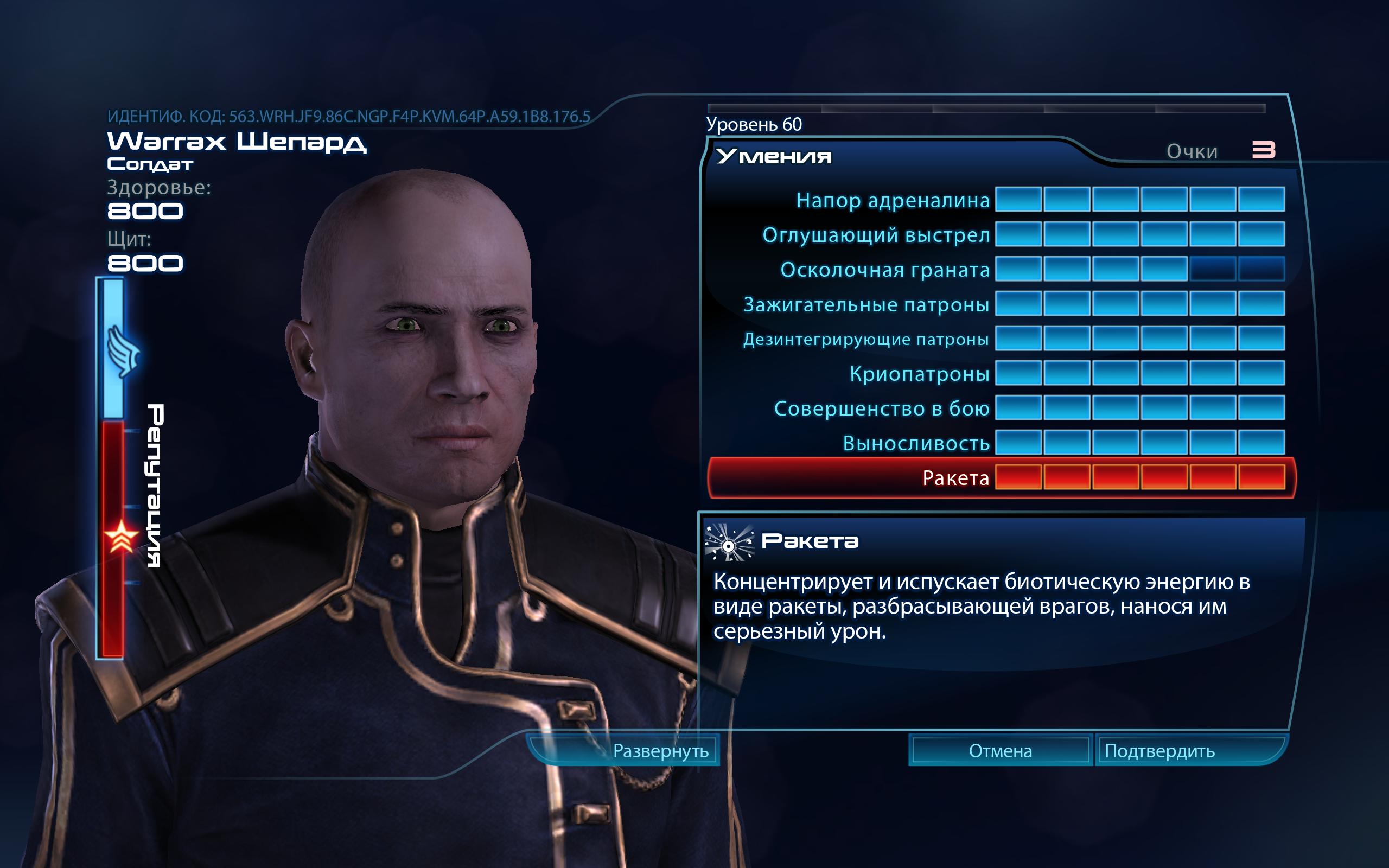 13. Окончание игры, вот такой Шепард получился, из-за дополнительных DLC получилось добраться до 60-го левела (это предел), а первый раз игра закончилась на 58-м.