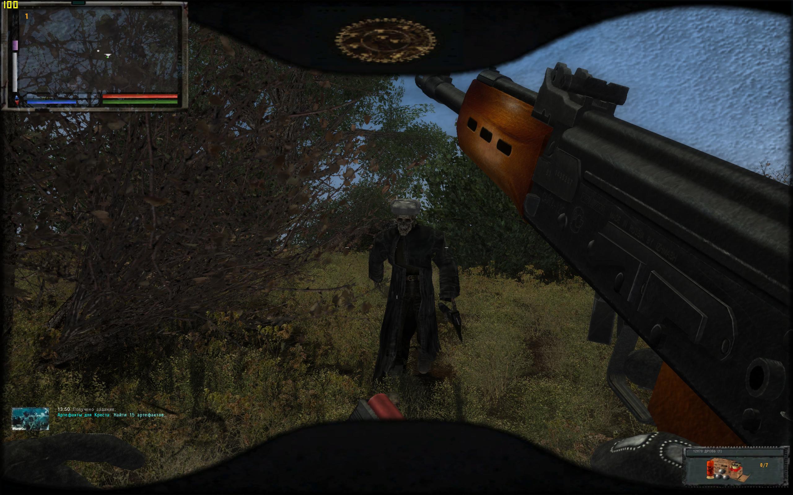 03. Это Лесник, его Крест просил убить. Тут было странно: он возникал случайно тут же и рядом, а убивается, похоже, только гранатами (как и прозрачные булькающие зомби), но, поскольку он рядом с Крестом, то от гранаты прилетает и тому -- и он обижается. Переиграл, сразу не возник, потом найду.
