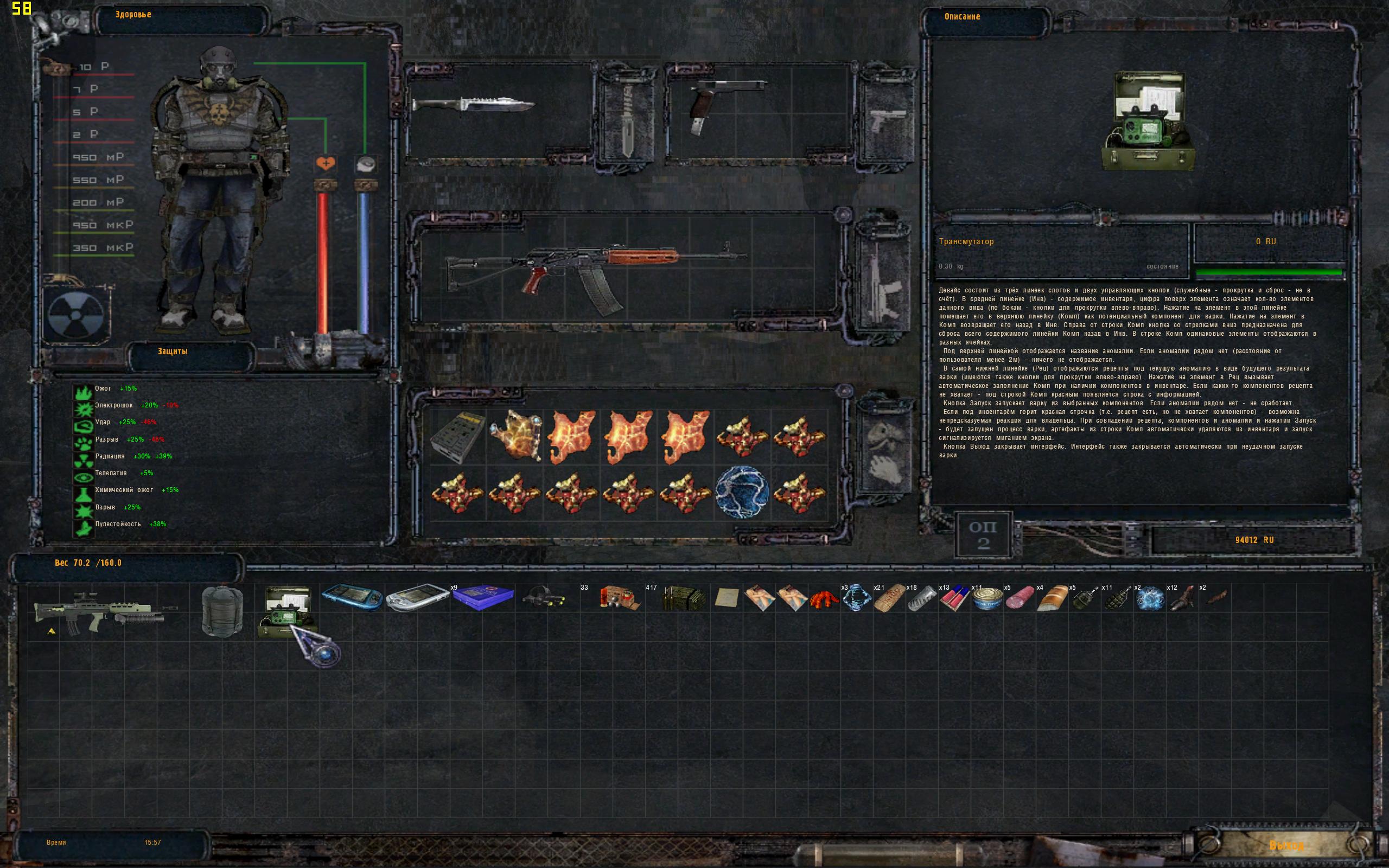 Некоторые скажут, что это -- голимое читерство, но никто же не заставляет ставить себе сразу гаусс и т.д. Но вот я нечаянно модифицироыванный МП-5 для Юрика продал кому-то -- и всё. Мог просто мимопроходящему сталкеру, в продаже ни у кого нет. В самой игре есть опция "любой предмет за 200000 рублей" -- но для МП-5 это жирно, а какой-нибудь навороченный гаусс -- а почему не купить? Так что тут просто расширено для удобства. Про то, что без проводников грустно бегать от Сидоровича на Агропром (а потом и дальше потребуется), я уже писал. Так что телепорт на уже исследованное место -- это даже не чит. И с тайниками удобно, ибо я играю в RPG+Shooter, а не в "пойди поищи пару дней в нескольких местах". И с прыжками и т.д. -- нафиг-нафиг, я на аркаду не подписывался. Так что в указанных целях юзать буду без стеснения, а то модеры мудрили, мудрили, да перемудрили.