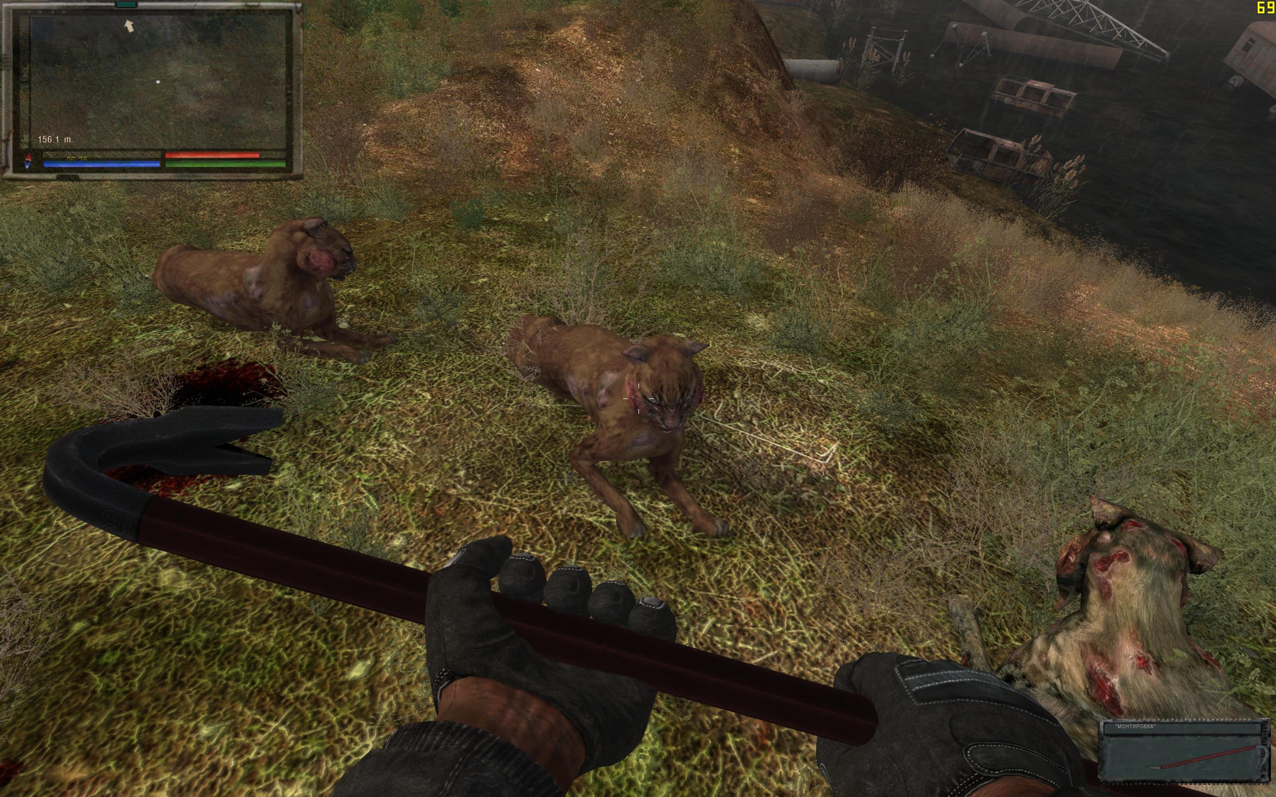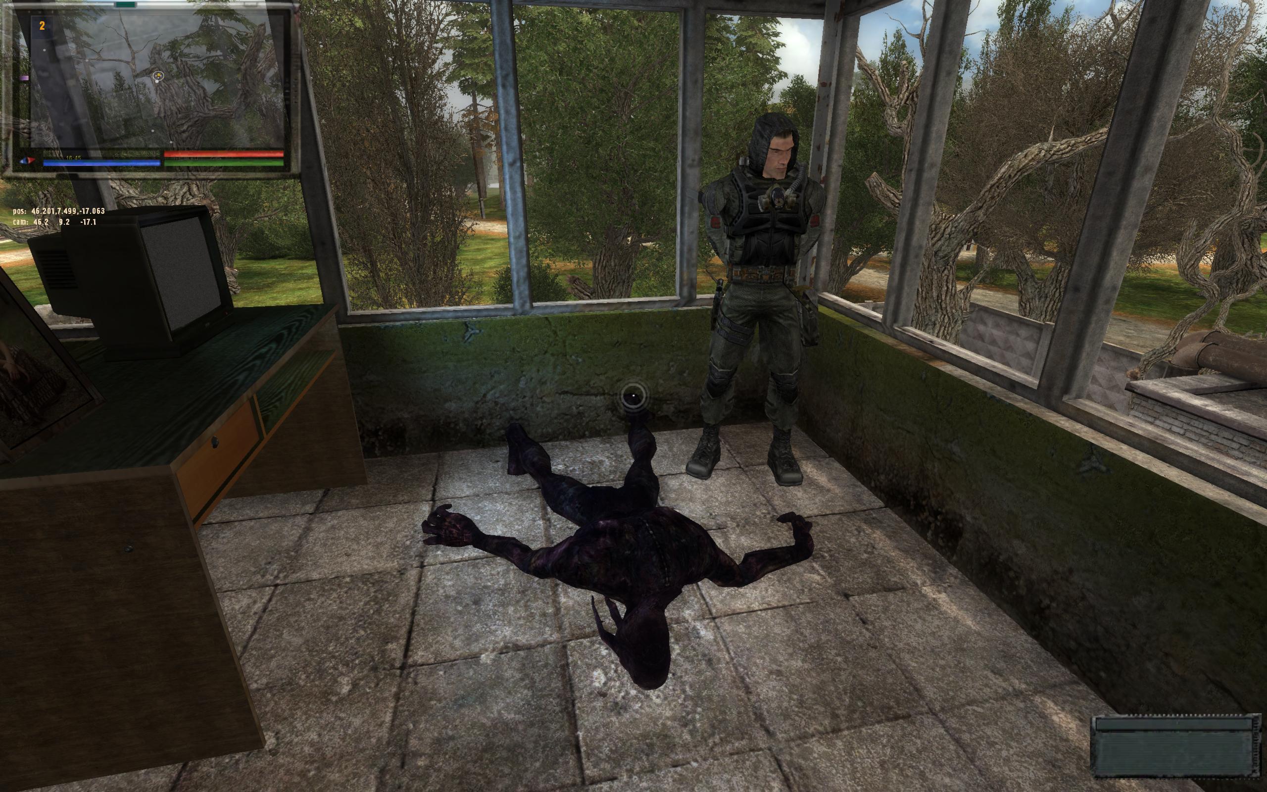 Дело в том, что распространённые видепрохождения, по-видимому, делалились на предудущих сборках, а тут доработали -- и как дополнительная опция счастья появляются две электрохимеры, которые, резвясь по двору, электроразрядами по площади добивают раненого долговца возле ямы. На скрине как раз одна уже резвится в ангаре, во дворе все кончились.