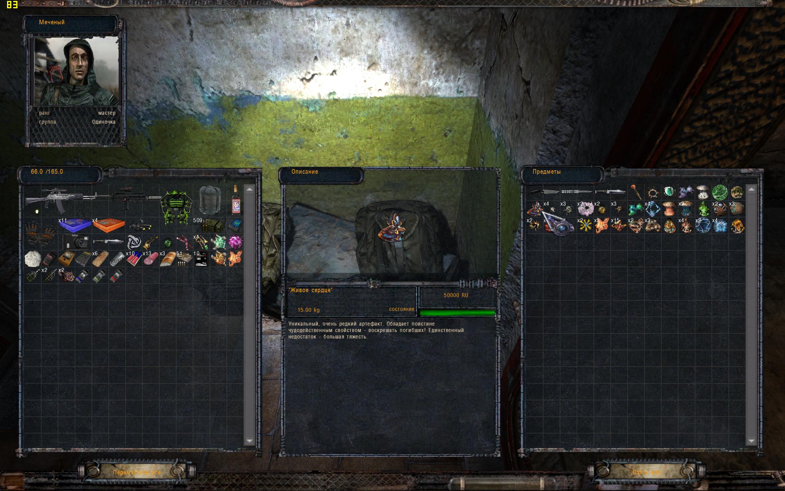 Итак, трое спасённых приходят к четвёртому на Свалку на блок-пост, и за спасение квада дарят знатный артефакт "живое сердце" весом в 15 кг.