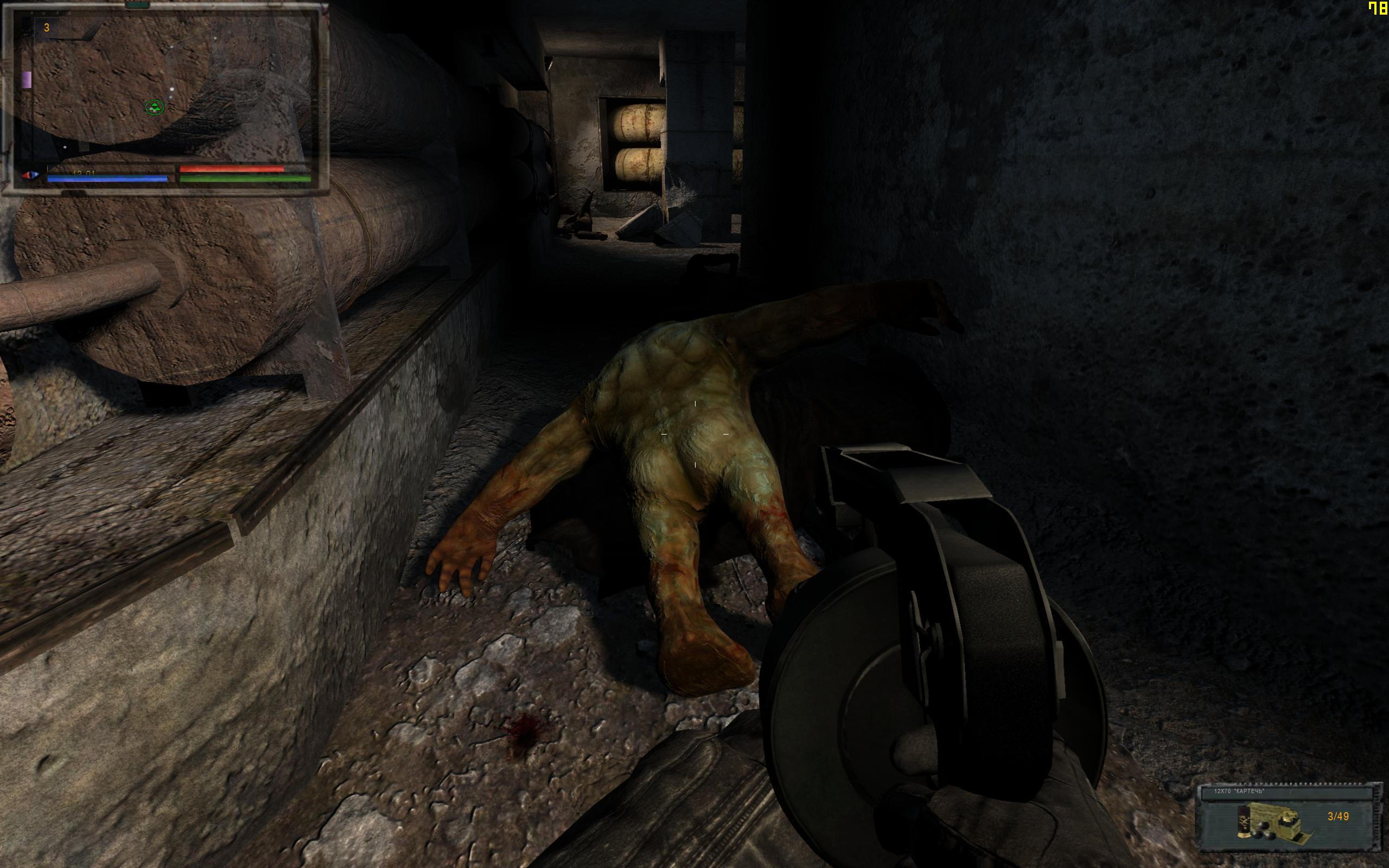 26. А это -- новое население подвала Агропрома. Макс Любер туда направил -- мол, положил там ПДА, не принесёшь? А тут как раз два задания на зачистку бандитов -- от Сидоровича и Бармена (не любят они конкурентов), ну и пошёл. А там, как я уничтожил первых бандюков и военных, та-а-акое завелось....