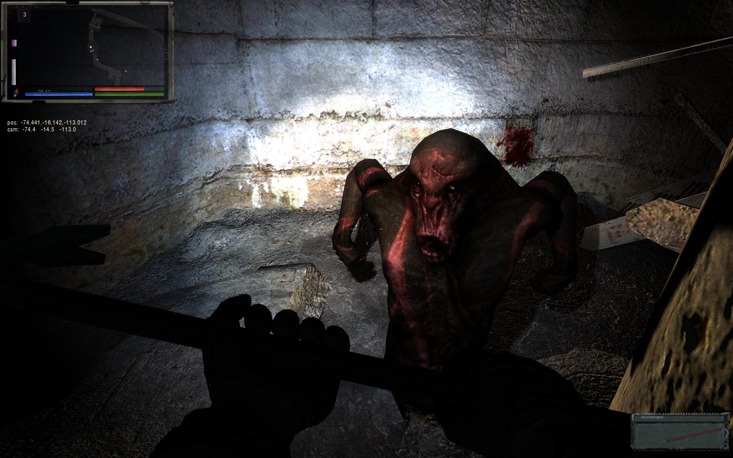 18. Болота, суровый монстр, я до этого одного в Пещере видел. Забавно, но на местного сталкера не реагирует, типа кинулся -- и ладно. А вот Меченому делает суровое кровотечение, которое не лечится почти.