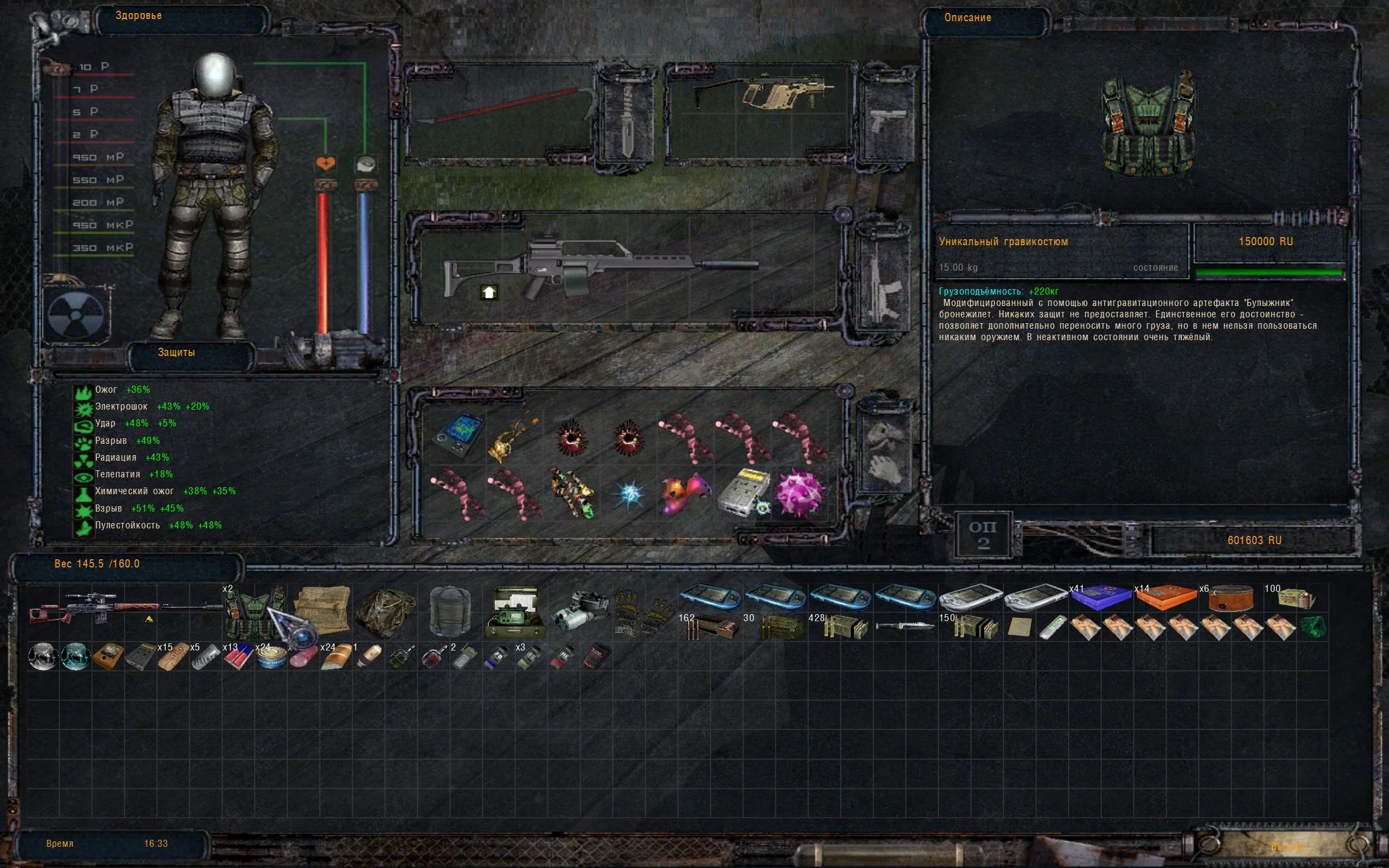 03. Специальный костюм для переноски мародёрки. Стрелять в нём нельзя, только грузчиком работать. Но жизнь реально облегчает, грузоподъёмность почти в два раза больше. Поэтому и стрелять нельзя: руки-то заняты!