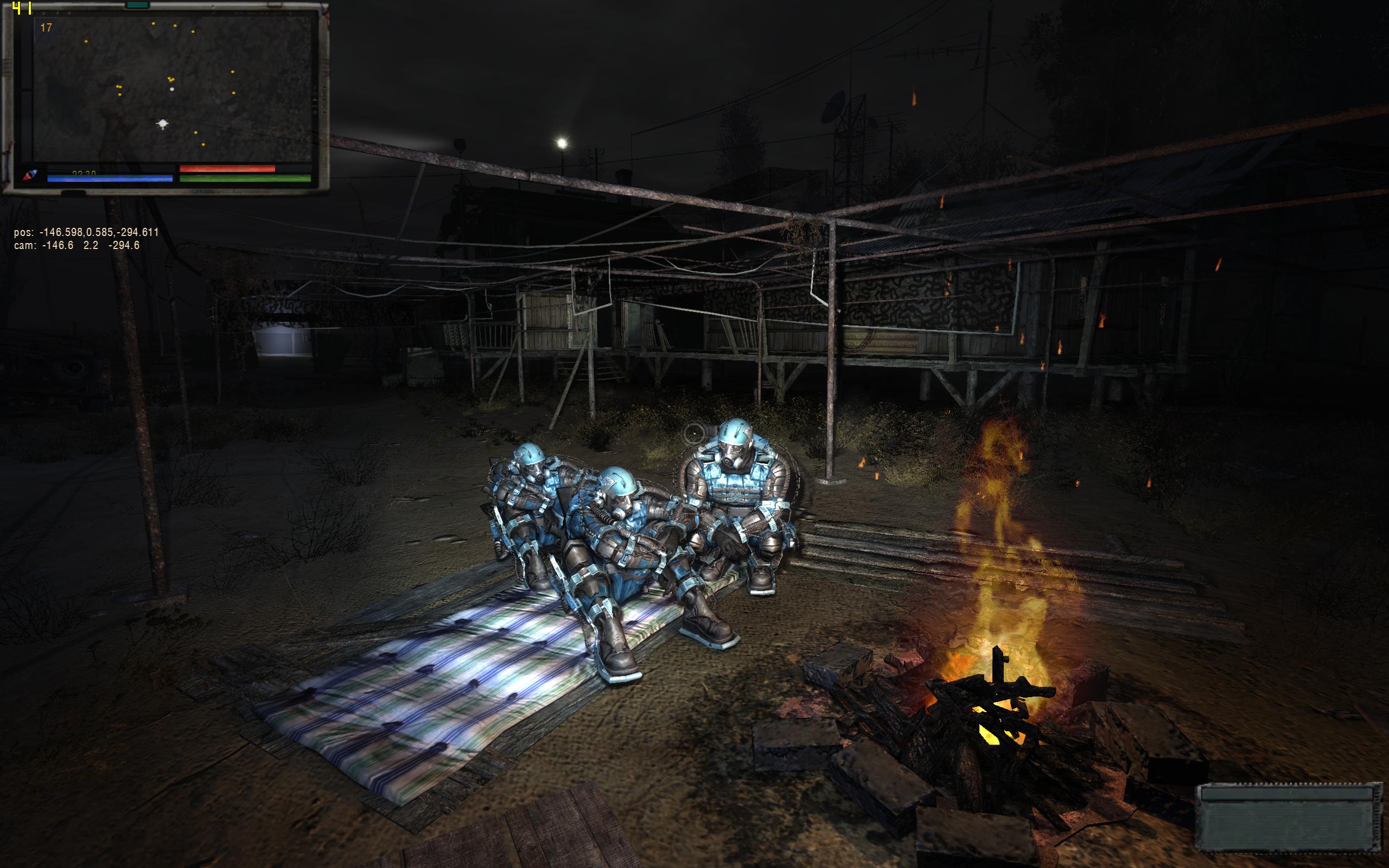 19. База Чистого Неба. По сравнению с ЧН -- как-то мало квестов на базе, зато у всех хорошая броня и экзоскелеты часто встречаются. Такое ощущение, что им бабок подкинули, чтобы не лезли учёным мешать, и теперь снаряга есть, а мотивации куда-то ходить -- нет. Но хотя бы тут нет войны группировок, что очень радует, я с ней откровенно замучился в ЧН.