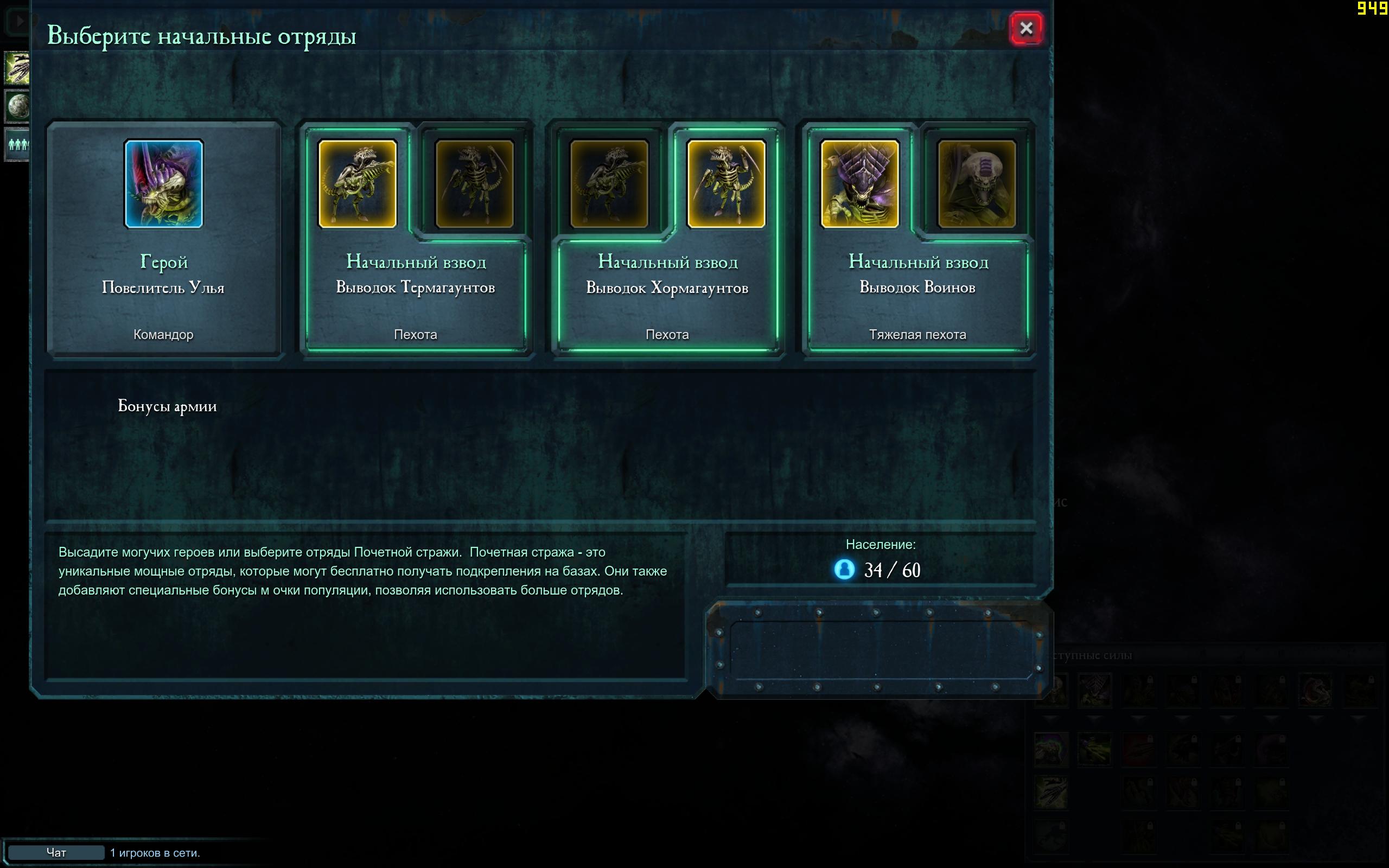 1. Начало. Сразу же отличие: дают не нескольких героев, а лишь одного Повелителя Улья.