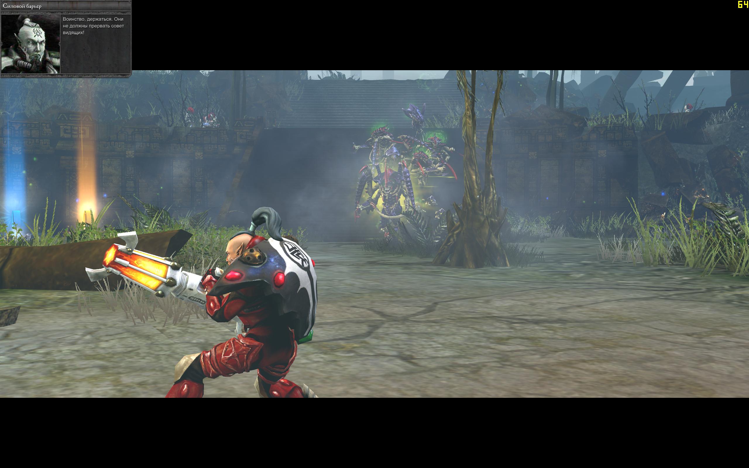 6. А их этого выходят новые тираниды. Что-то такое с зубами. Слева -- гвардеец, на начальных уровнях тот ещё танк.
