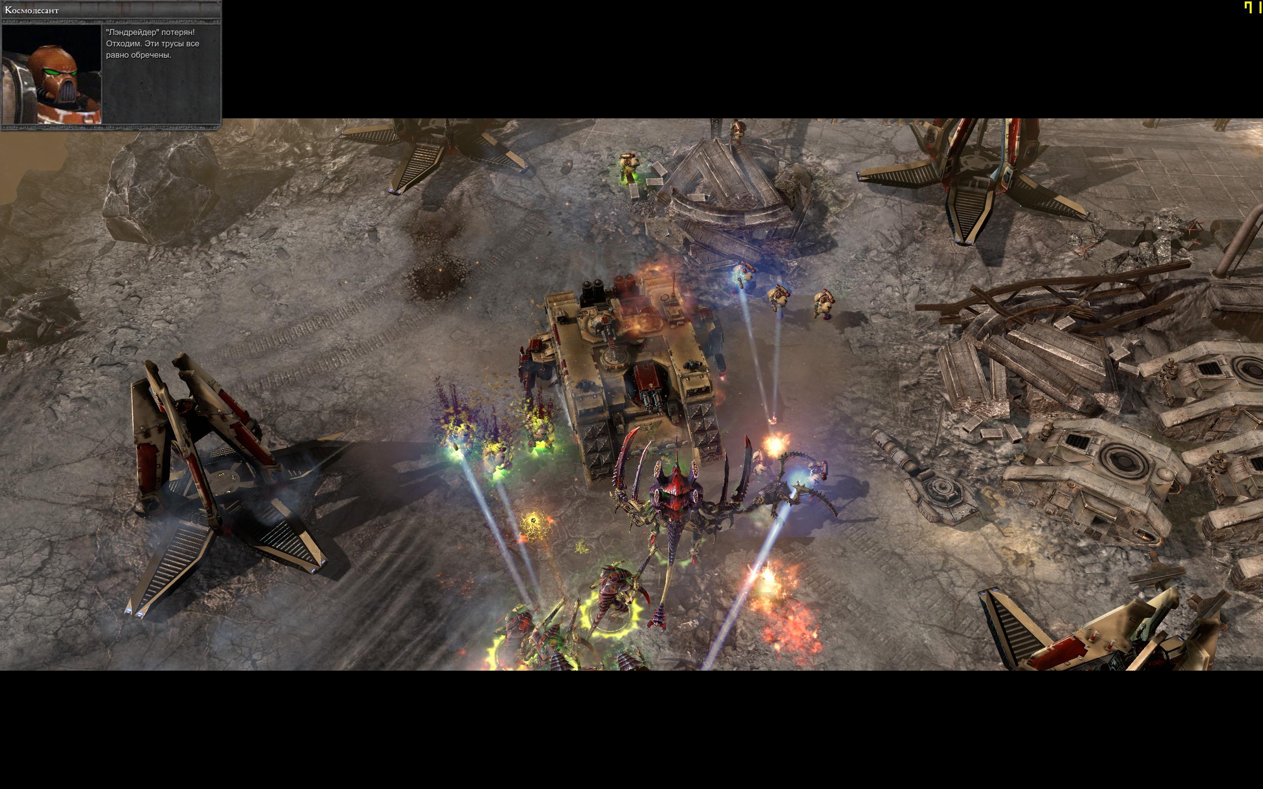 17. А вообще за тиранидов играется совсем легко и быстро. Вжик-вжик-вжик, и всё. Даже целиться почти не надо -- их реально много :-) Но в целом симпатий не вызывают. Сделали бы вместо них крыс, что ли, чтобы так же кишели, но было бы мило и пушисто :-)