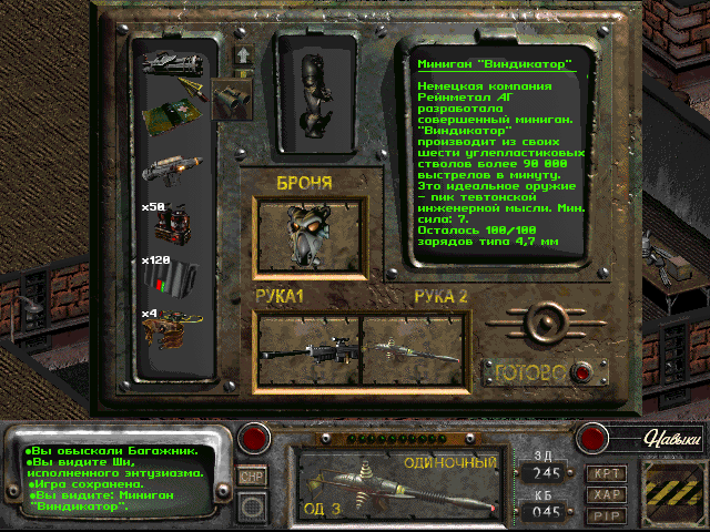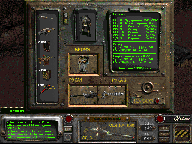 Без оружия ..... 086% Супермутанты ... 071