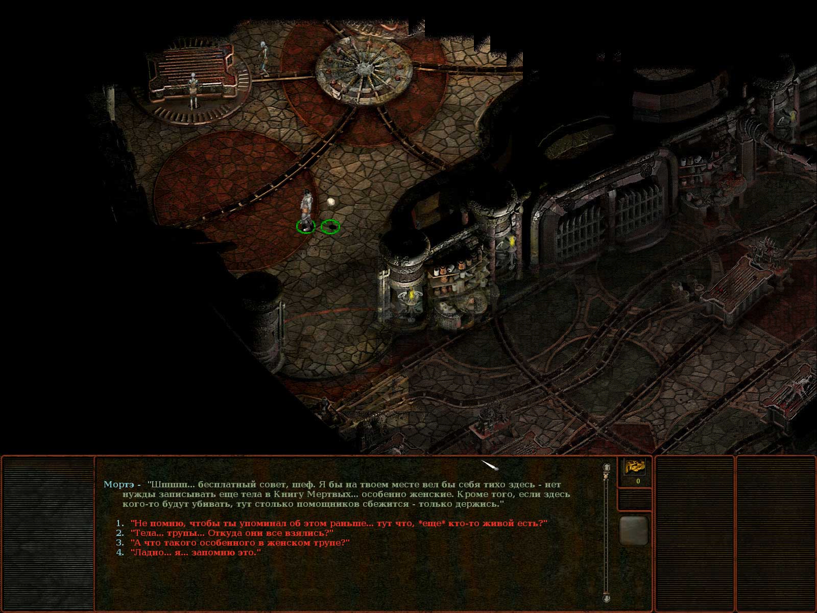 1. Разобрался, как убивать в Модронском лабиринте мага. Главное -- выдержать первый обстрел из пушки, а потом смыться за дверь, обкастоваться и идти обратно. Морте с матюгами натравливается на мага, а по всем присутствуюшим -- молниями. Затем уже ерунда.