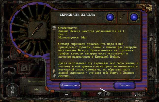 Анька и это не смогла спереть. Не убивать же Дхалла за перо. Возможно, это для тех, кто хочет пройти игру вором?